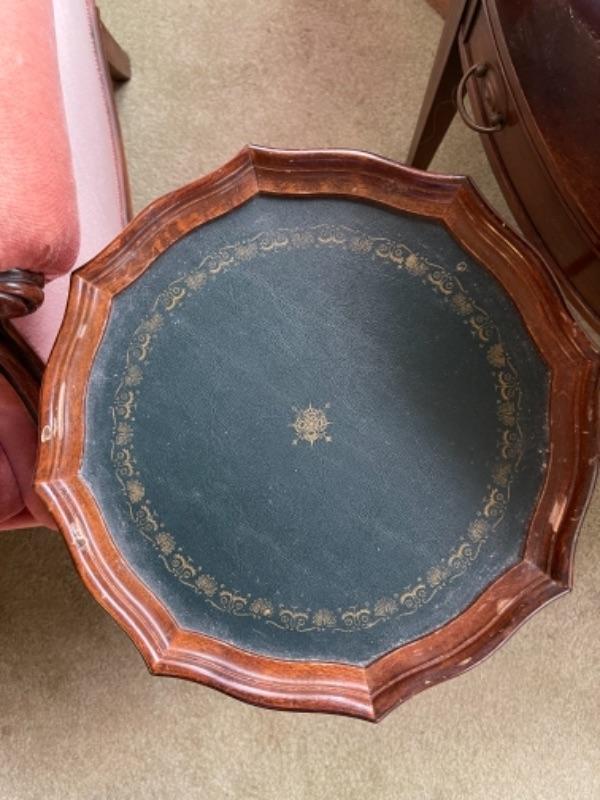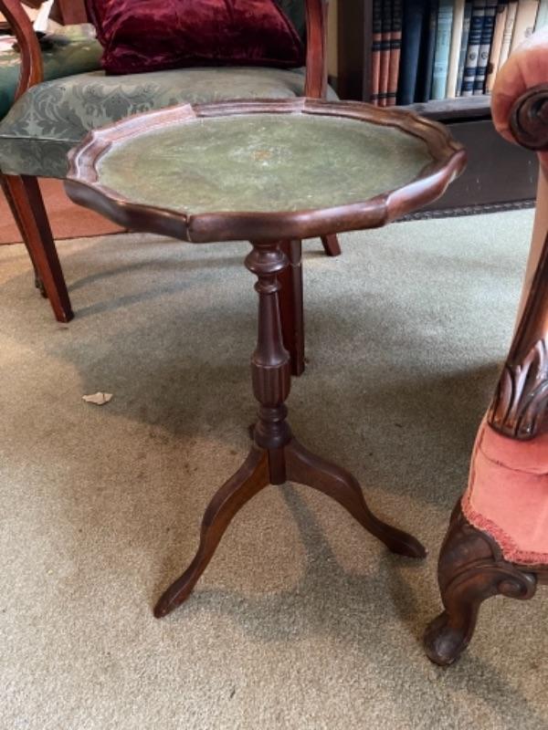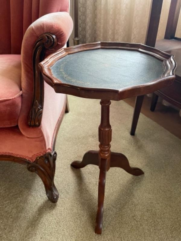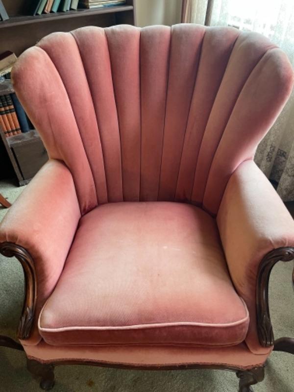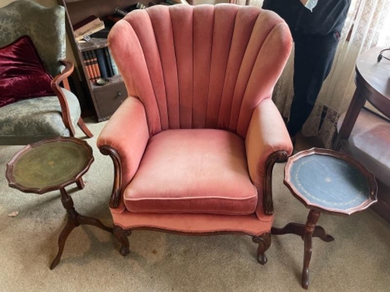 Lot 2L. Wing-back chair in cotton velvet with pair of wine tables--$75
