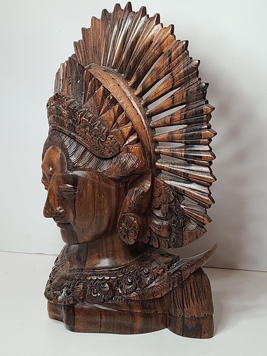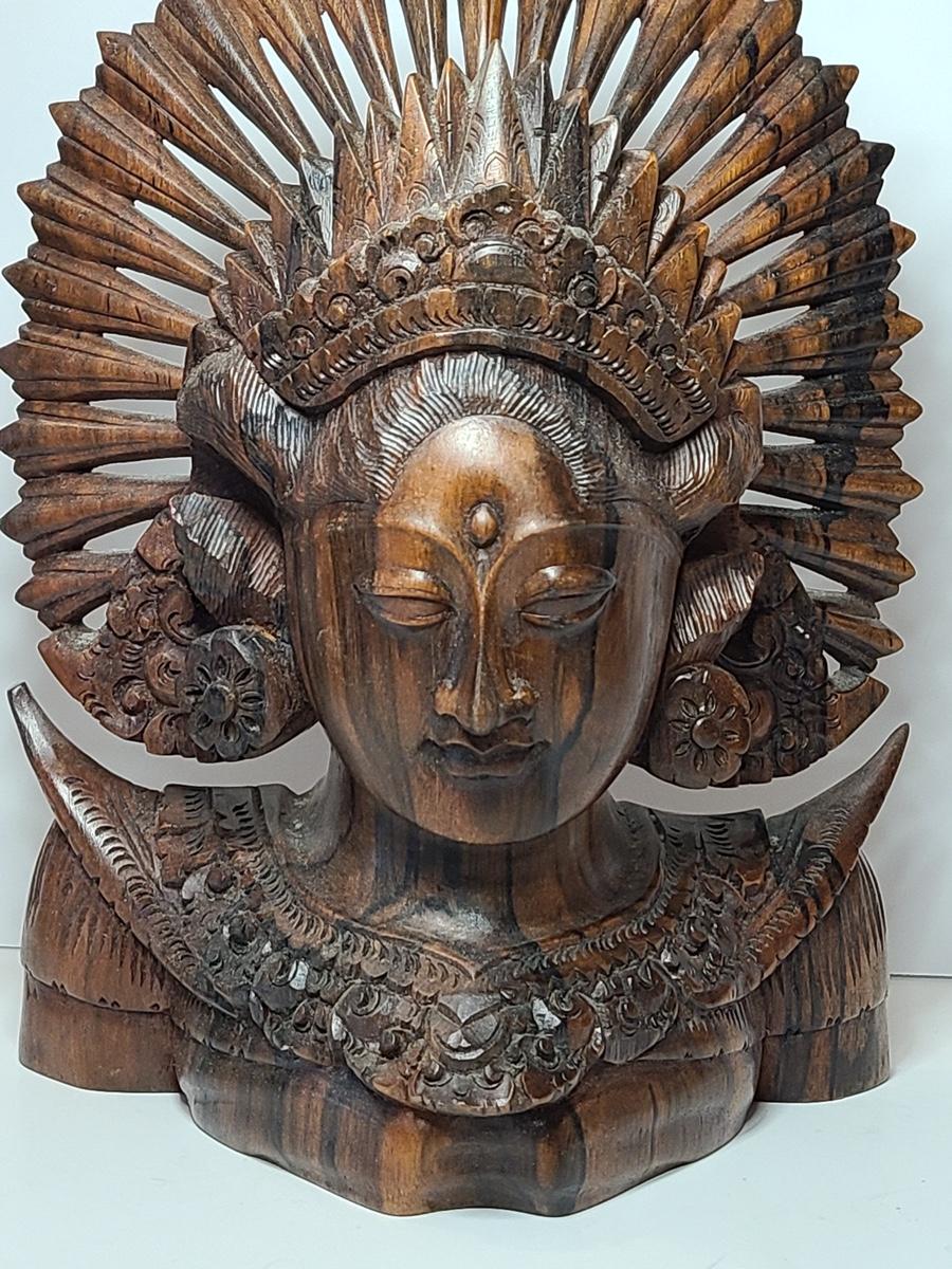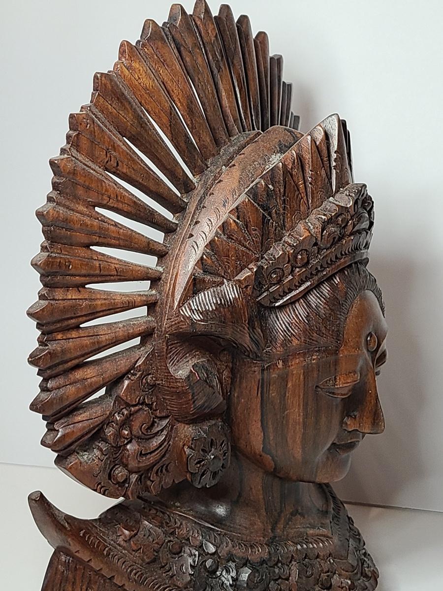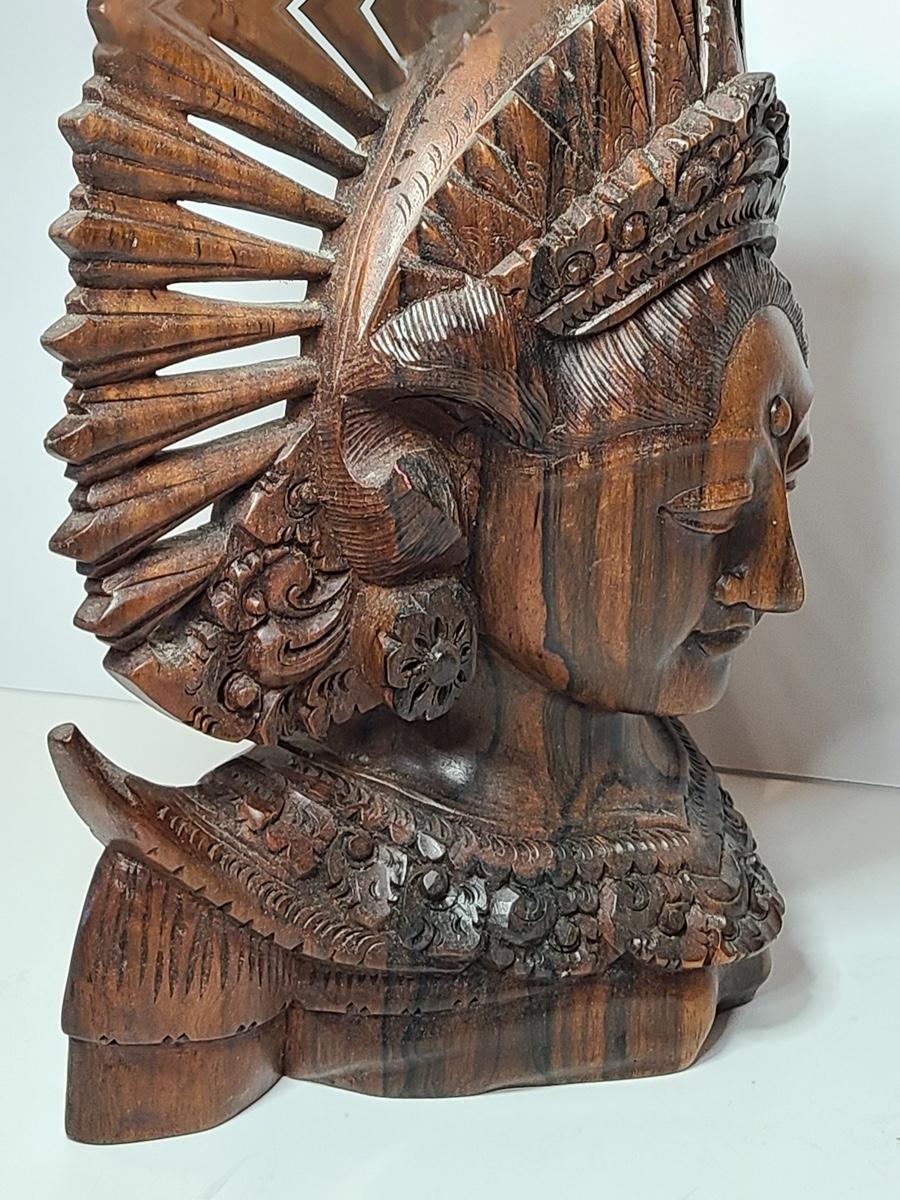 Lot 2: Vintage Large Wood Carved Bali Indonesia Bust Sculpture Art