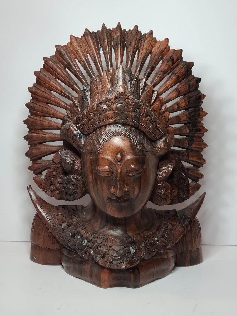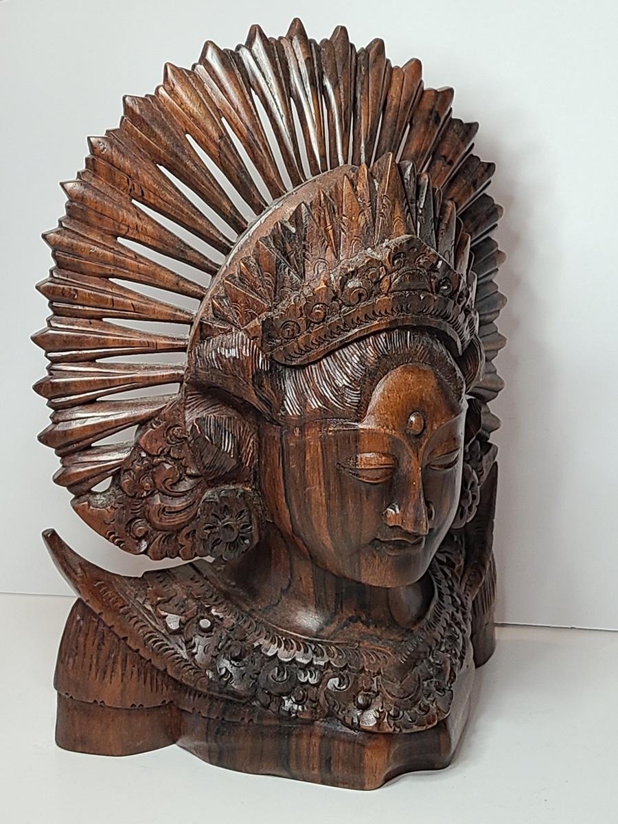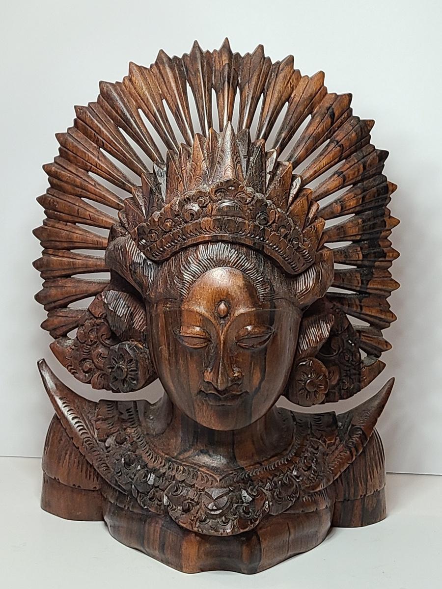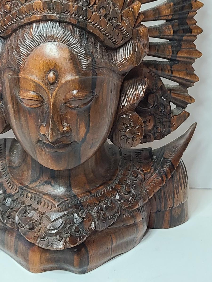 Lot 2: Vintage Large Wood Carved Bali Indonesia Bust Sculpture Art