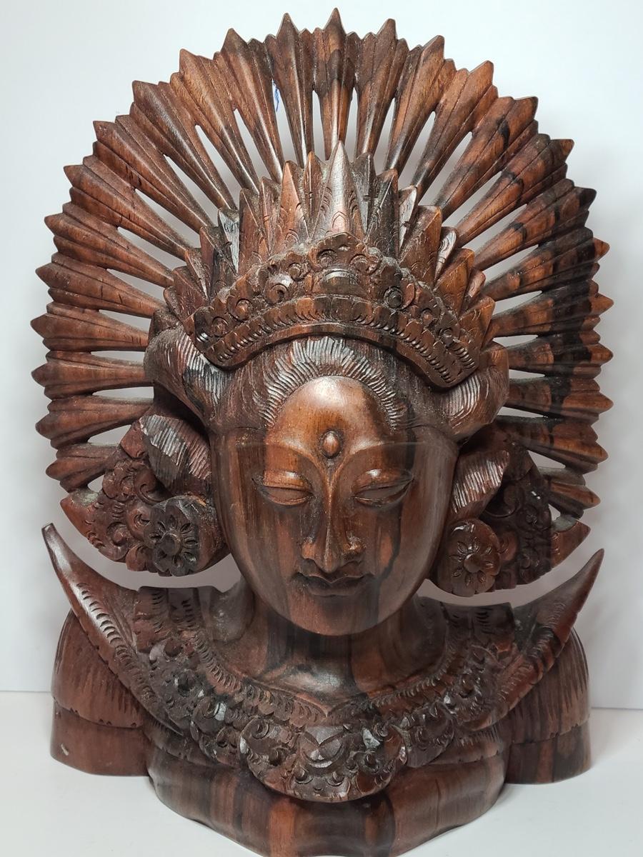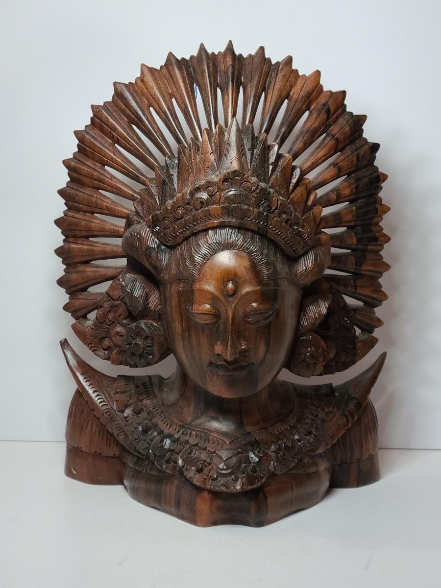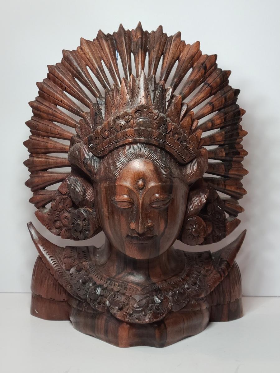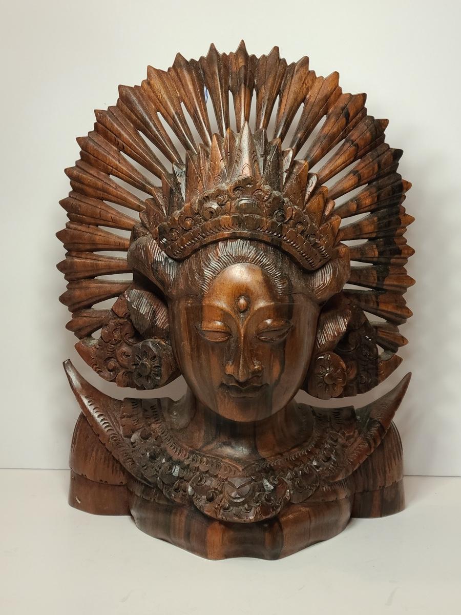 Lot 2: Vintage Large Wood Carved Bali Indonesia Bust Sculpture Art