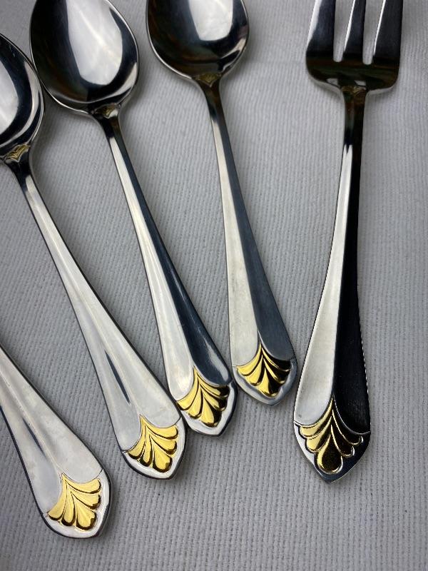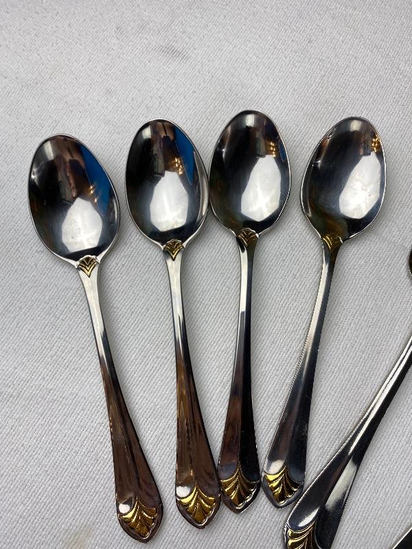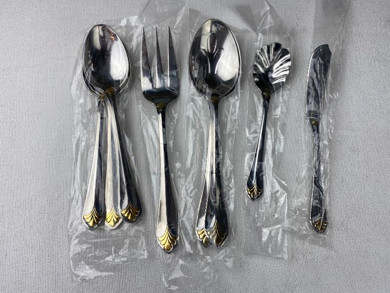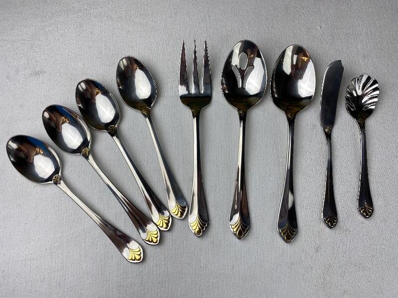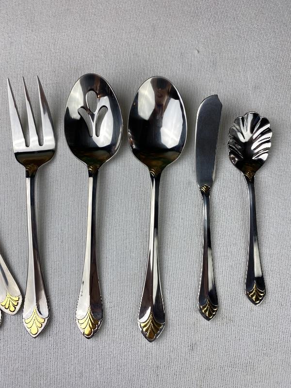 Lot# 2 S Wallace St Regis Gold 18/8 Stainless Flatware Serving Set with Soup Spoons