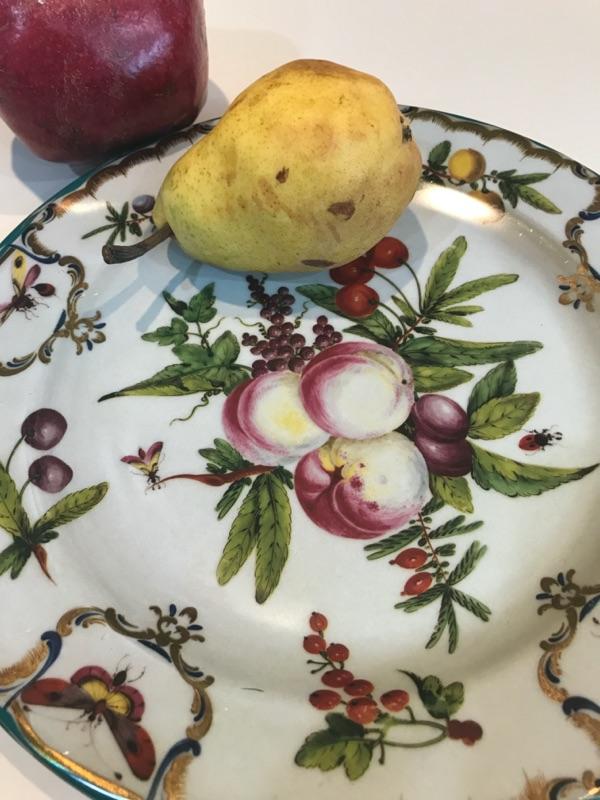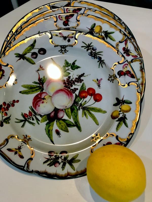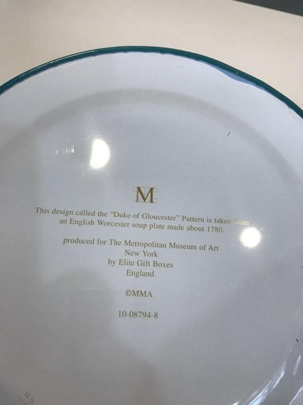 Metropolitan Museum of Art Tin plate reproductions: This 10" plate design was taken from an english Worcester soup plate from about 1780, called "Duke of Gloucester". Made by Elite Gift Boxes England