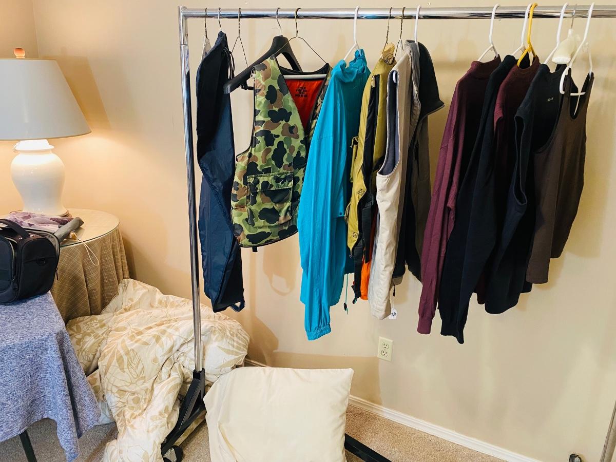 Lot 3: Men’s Clothing, Desk, Side Table, Lamp & More