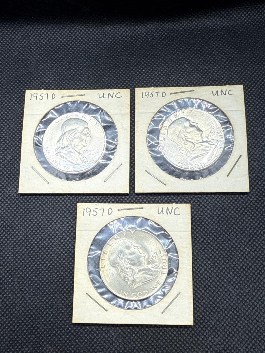 Lot (3) 1957 Franklin Halves - Uncirculated, Denver Mint