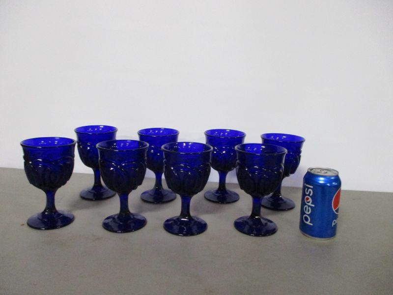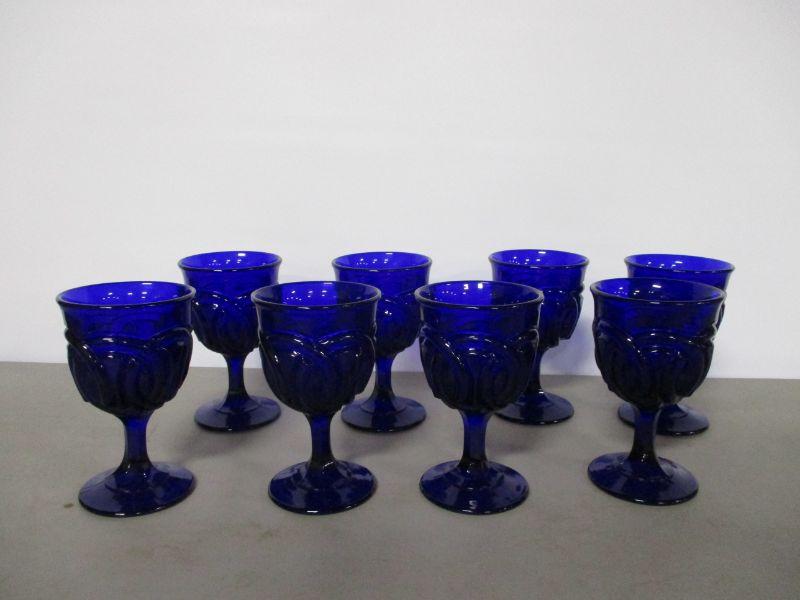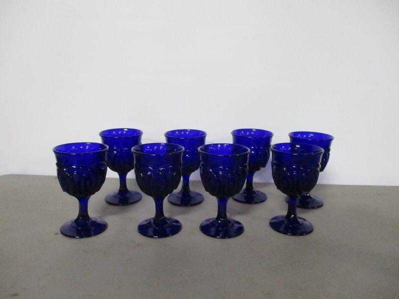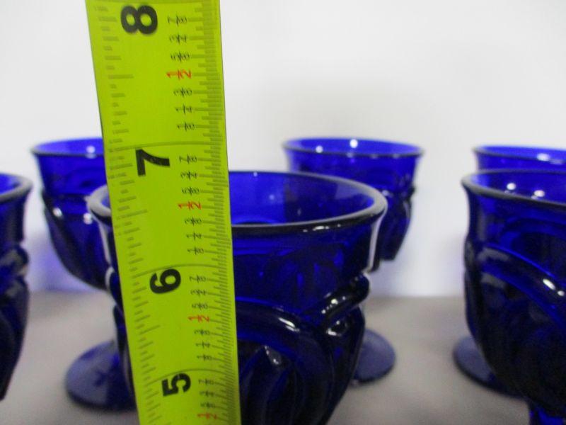 Lot 3 - 8 Cobalt Blue Embossed Glass Goblets
