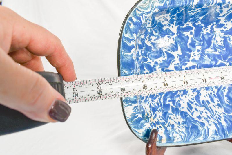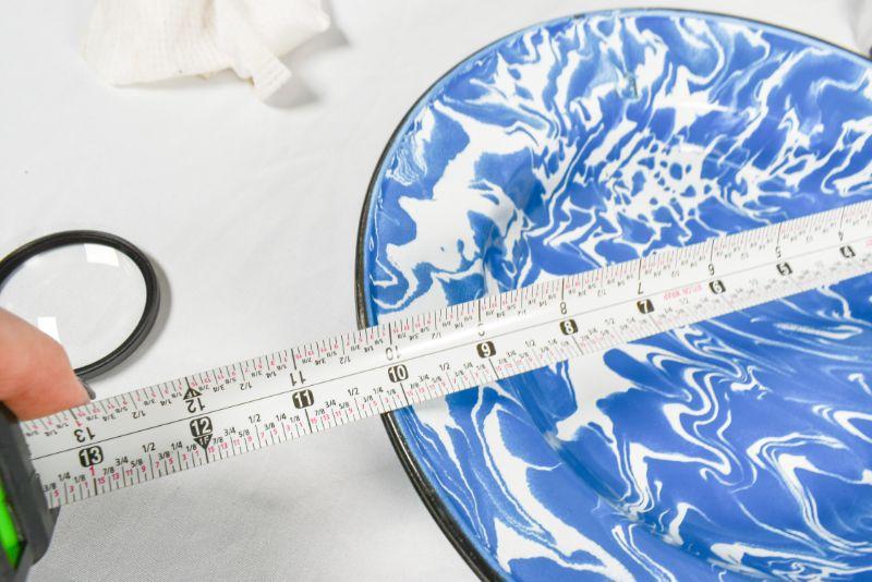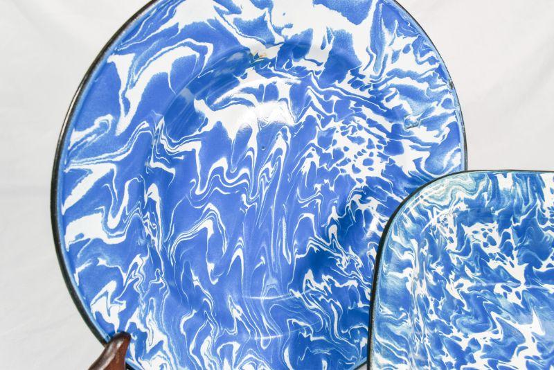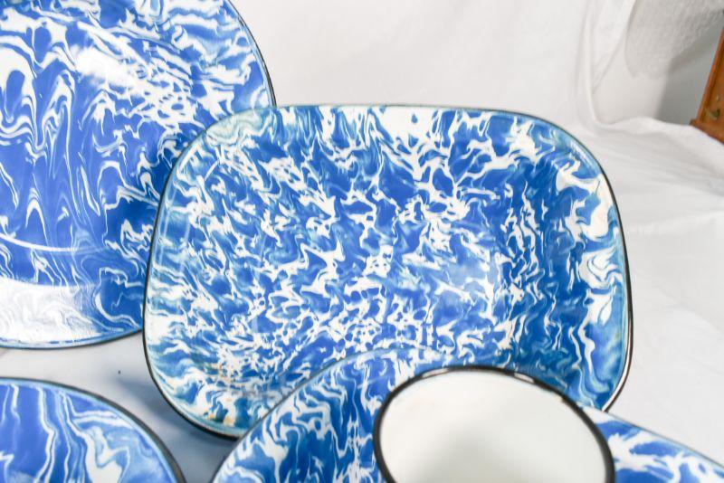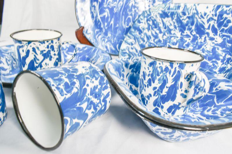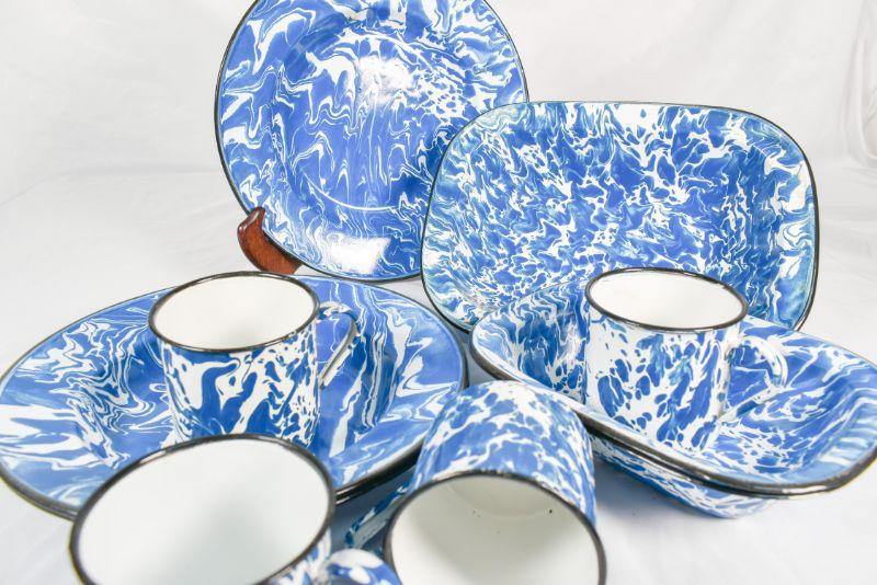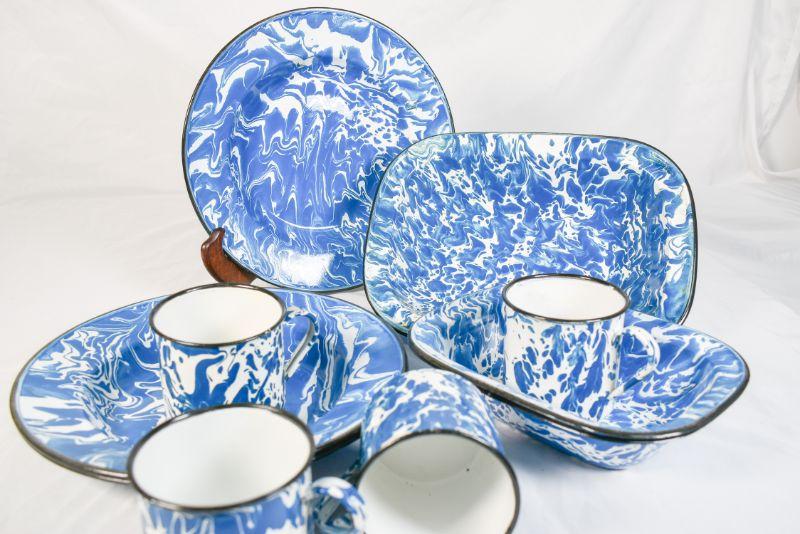 White and blue pattern, wth black trim. **Please read Terms and Conditions before placing a bid. Pick up is Sunday, December 22 from 11am to 3pm or Monday, December 23 from 4pm-7pm in Mantua, NJ. All sales are final. All sales are as is, where is. Please review all photos. Props are not included. Measurements are approximate.