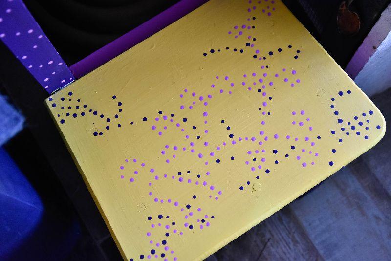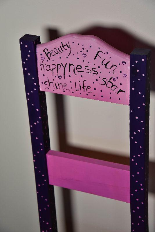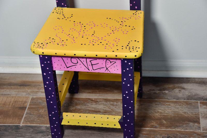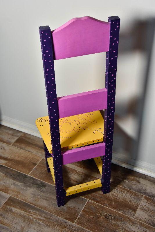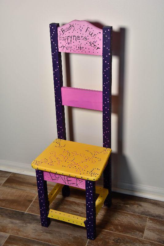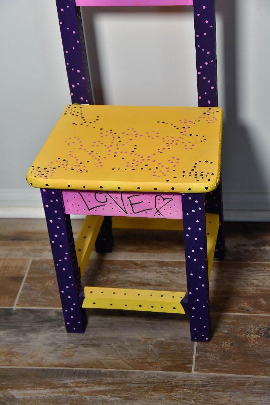Handpainted wooden chair. Makes a nice plant stand too.