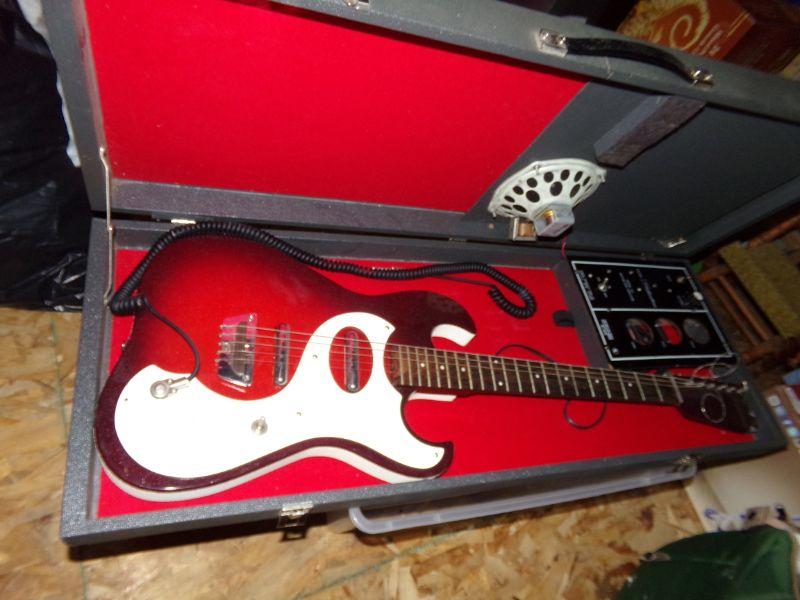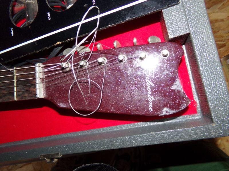 SILVERTONE ELECTRIC GUITAR. IT'S HARD SIDED CASE IS ALSO AN AMPLIFIER TOO!