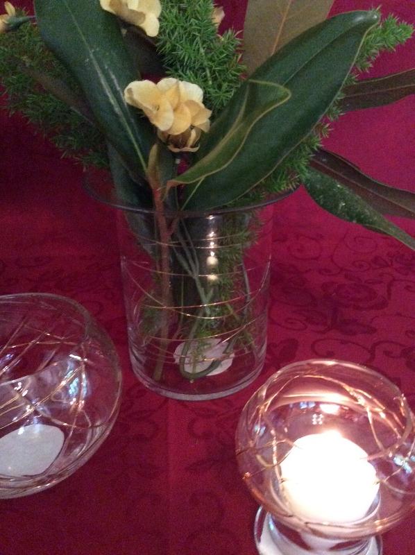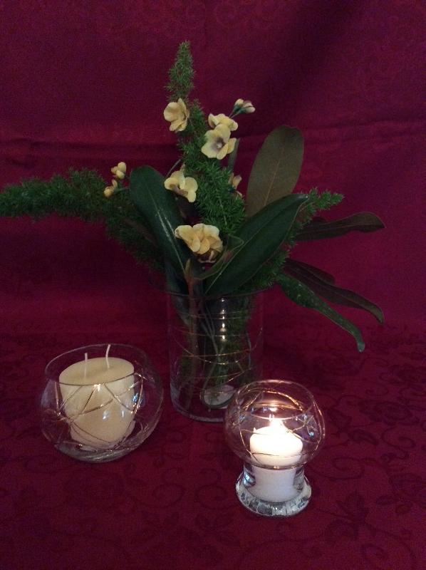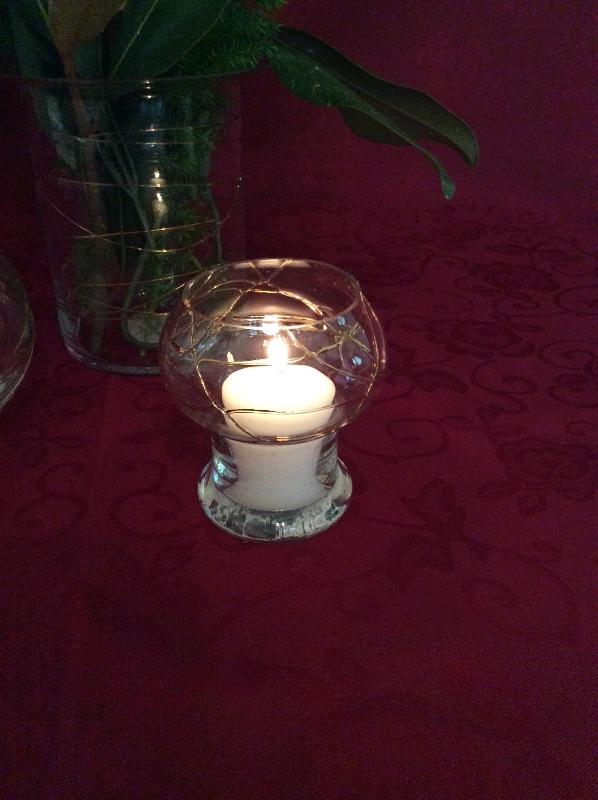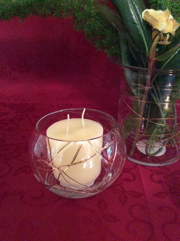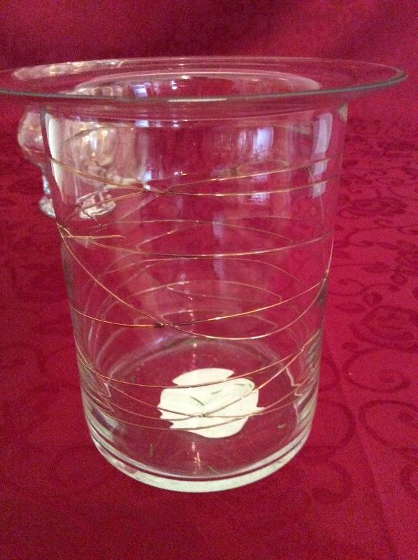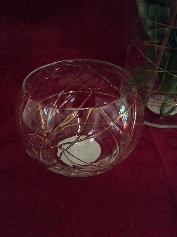 Another nice Party Lite votive, with ball belly candle holder, and vase. Clear glass with spun gold effect.