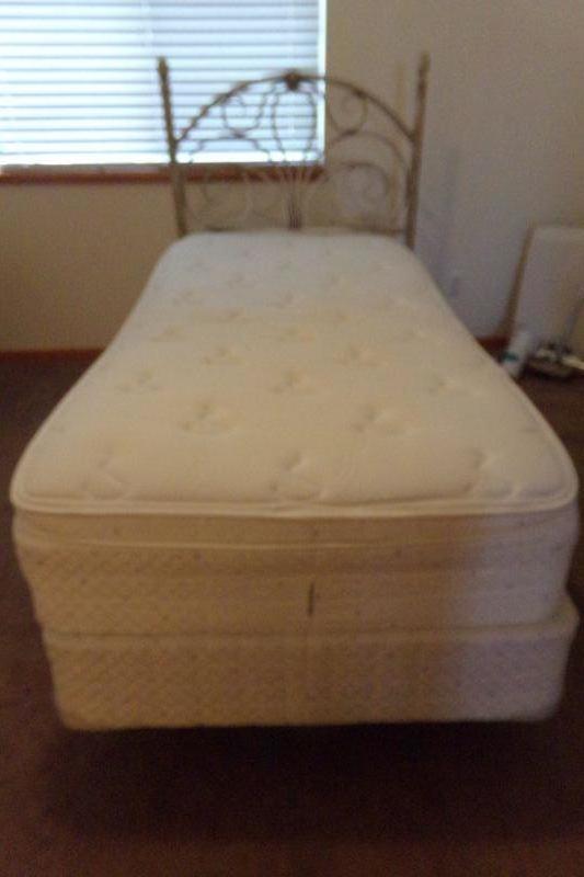 THIS IS A NEWER FOAM MATTRESS THAT HAS A STAIN TOWARDS THE TOP FROM AN EGG CRATE CUSHION THAT WAS USED. IT CAN MOST LIKELY BE CLEANED BUT WE DIDN'T HAVE TIME TO DO IT. MEASURES 73"x38",