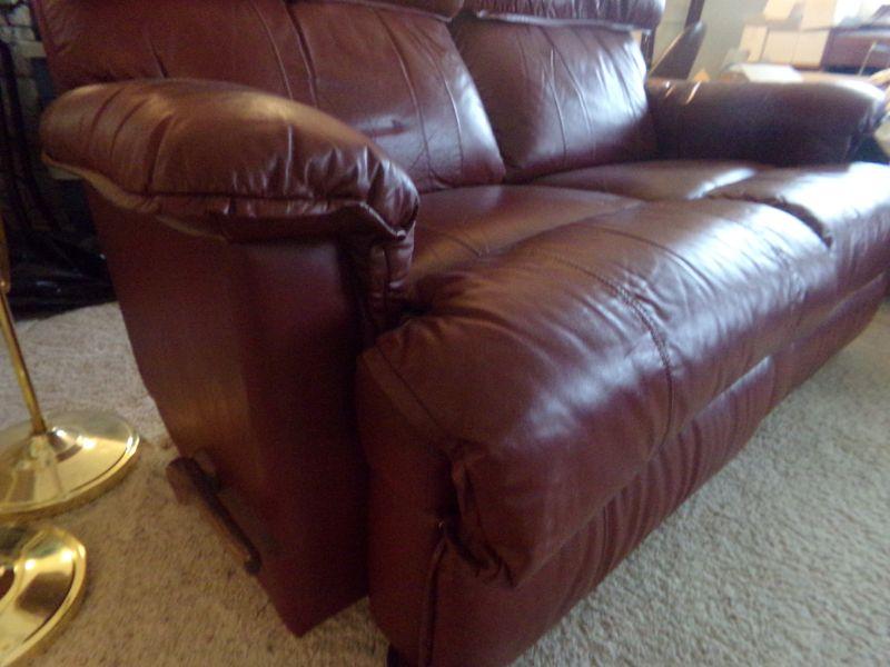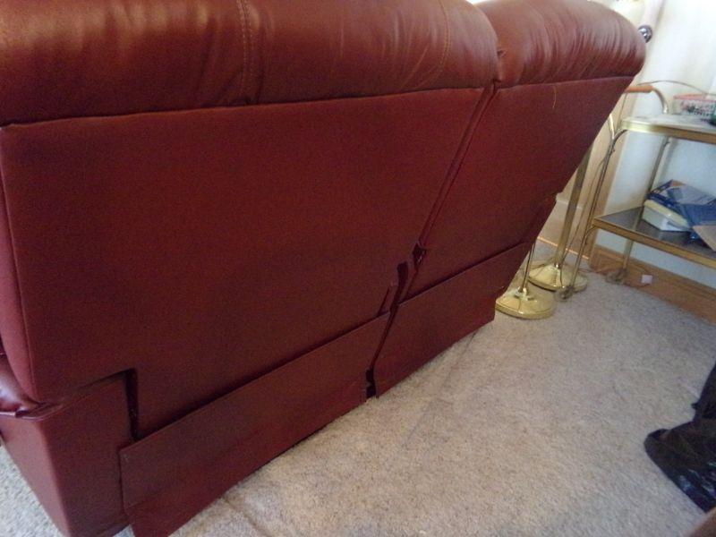 LEATHER DOUBLE RECLINING BURGANDY LOVE SEAT BY LAZY BOY