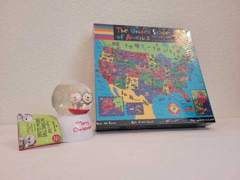Lot 3: NEW Puzzle (United States) and Christmas Snow globe