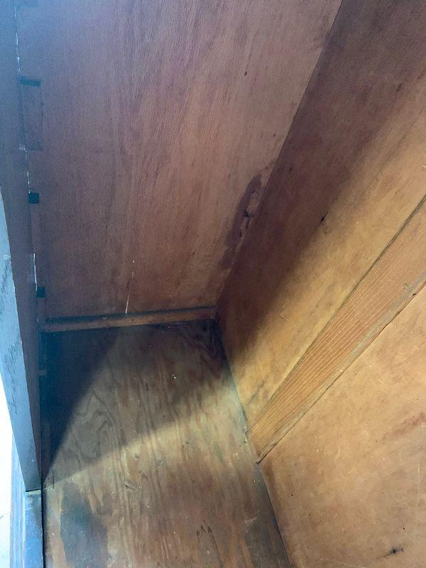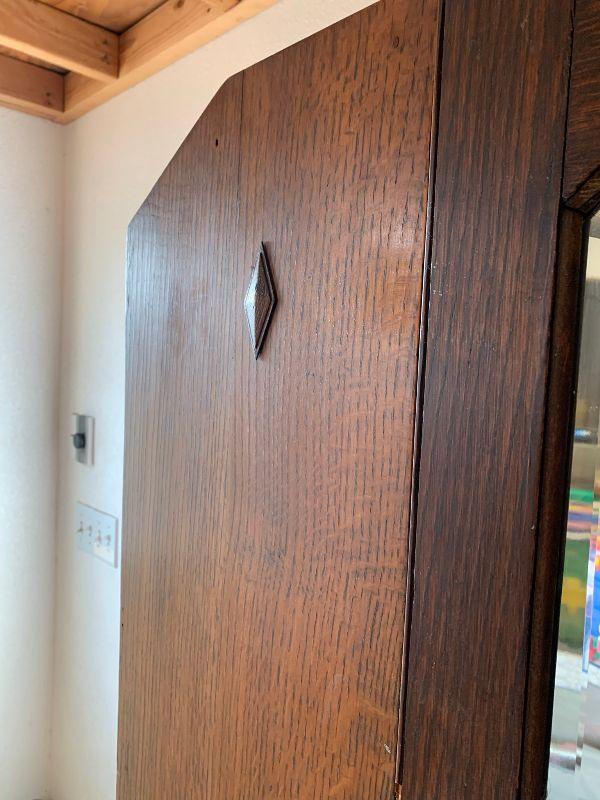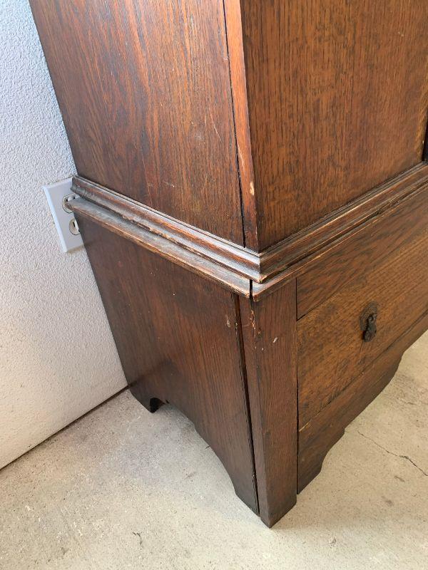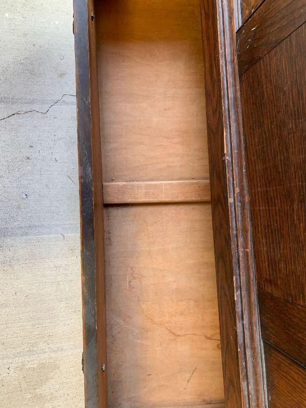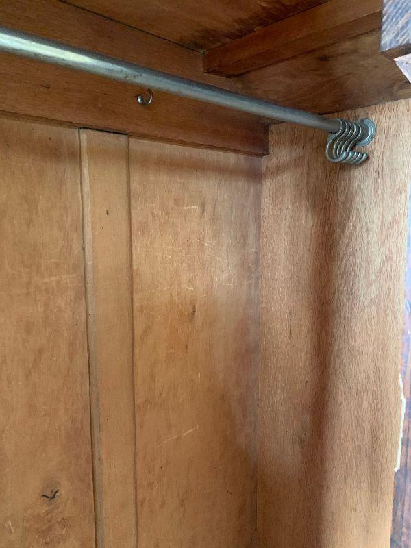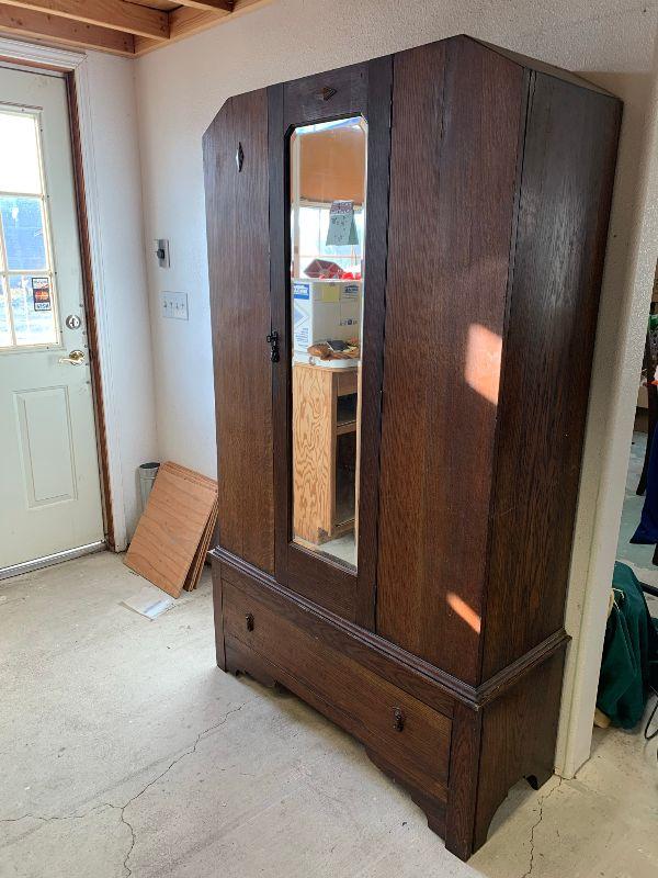 Vintage Armoire with bottom drawer and hanging hooks plus beveled mirror on the front. 70" x 15" x 40"