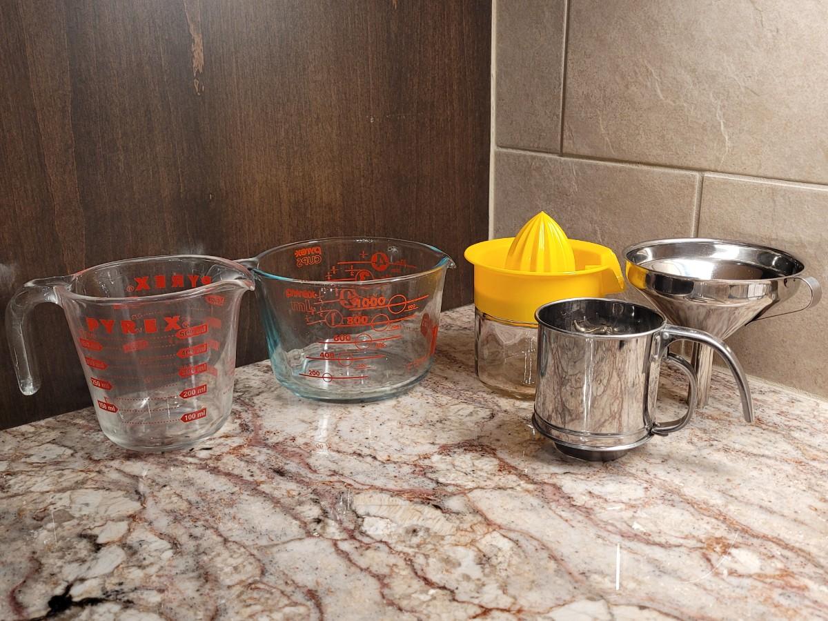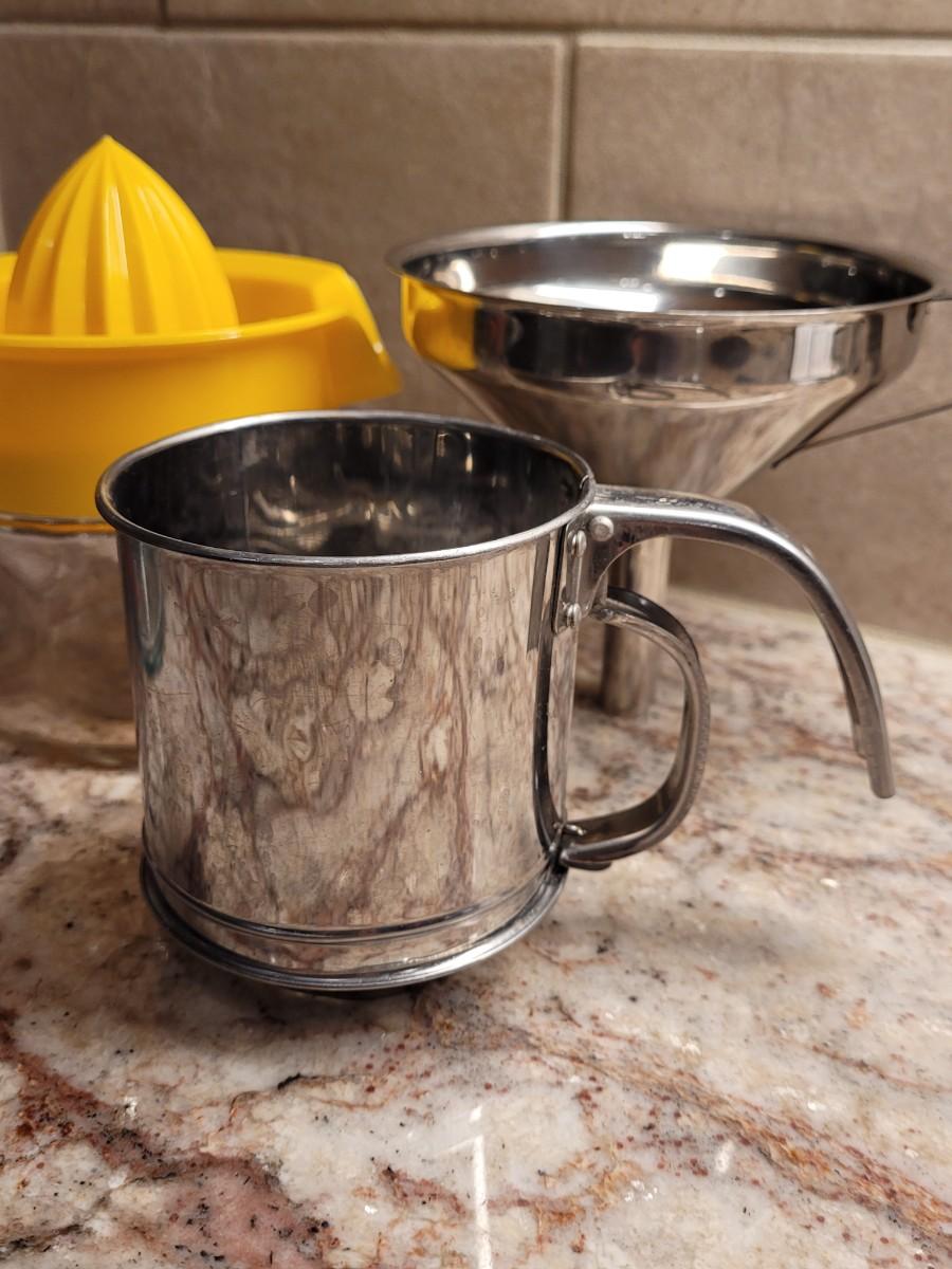 Lot 3: Measuring Cups, Sifter, Funnel and Juicer