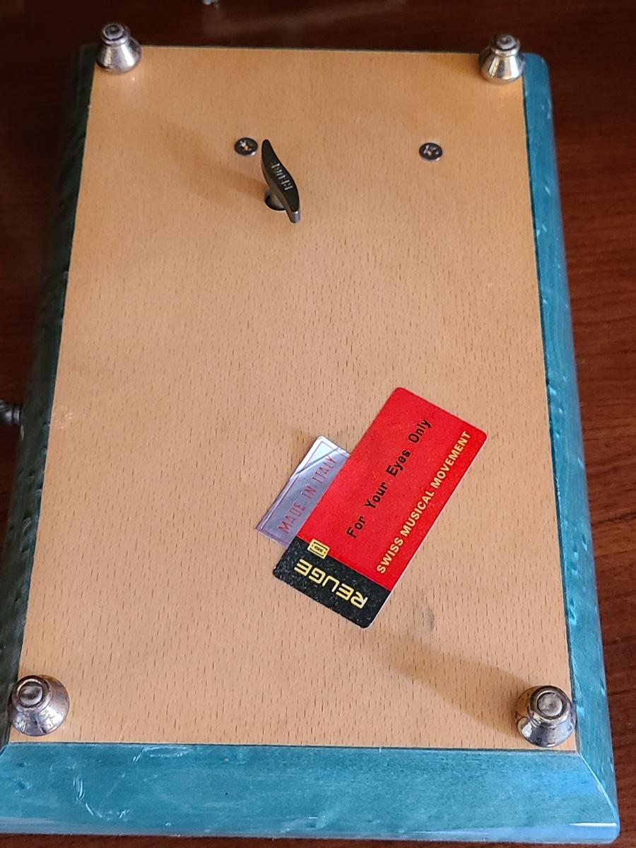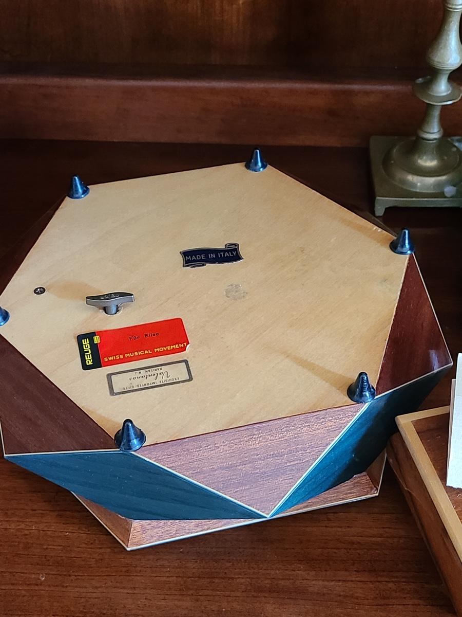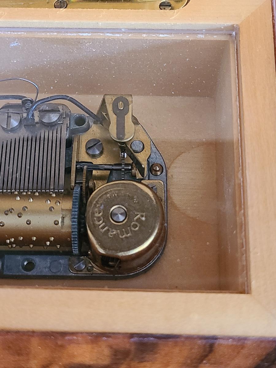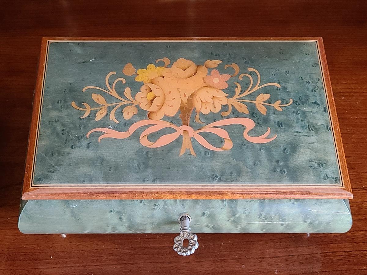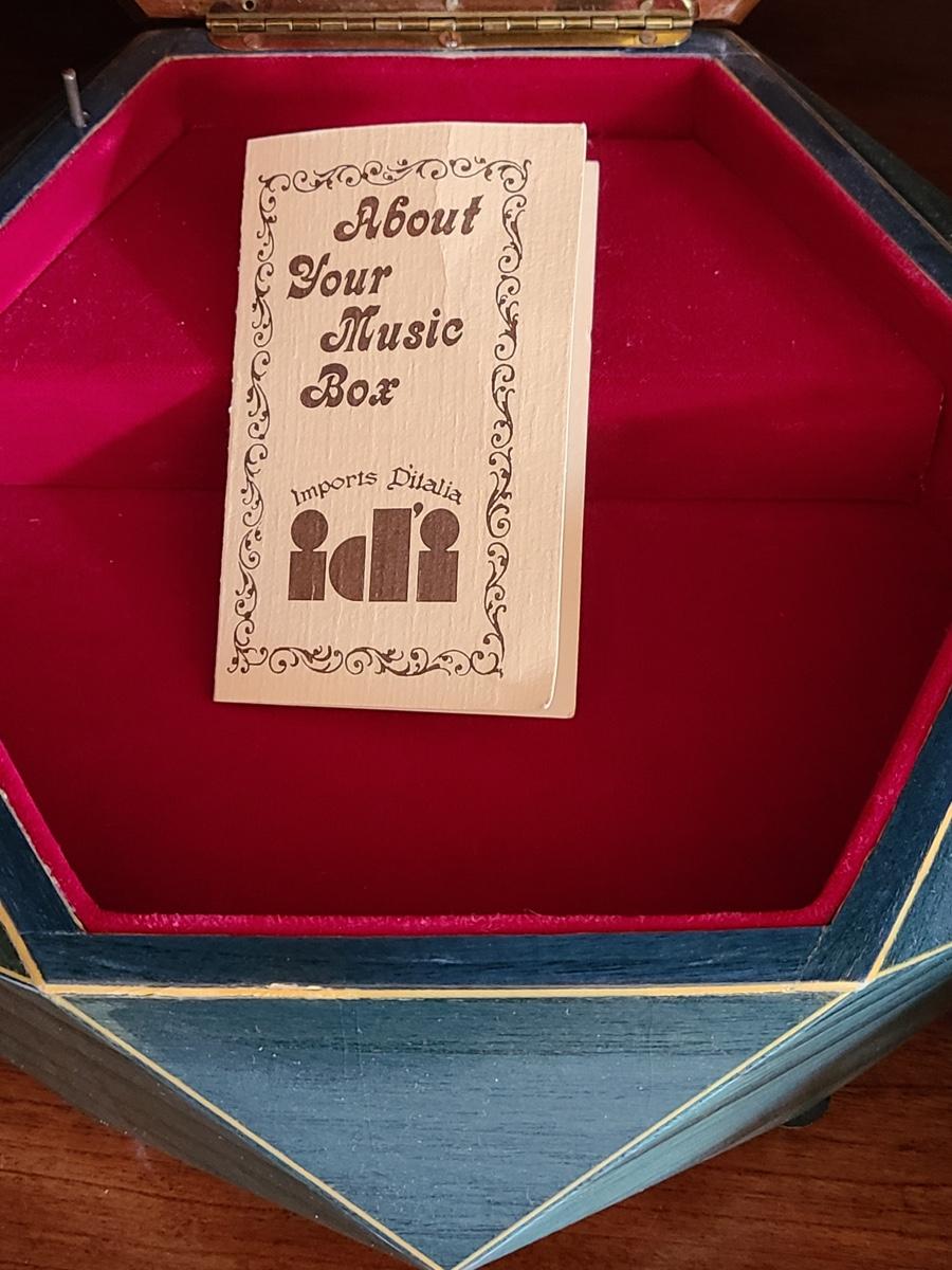 Three different music boxes, all work. The largest has age cracks on the topped the hinge needs a repair. Comes with a pair of brass candlesticks. Lovely and functional.