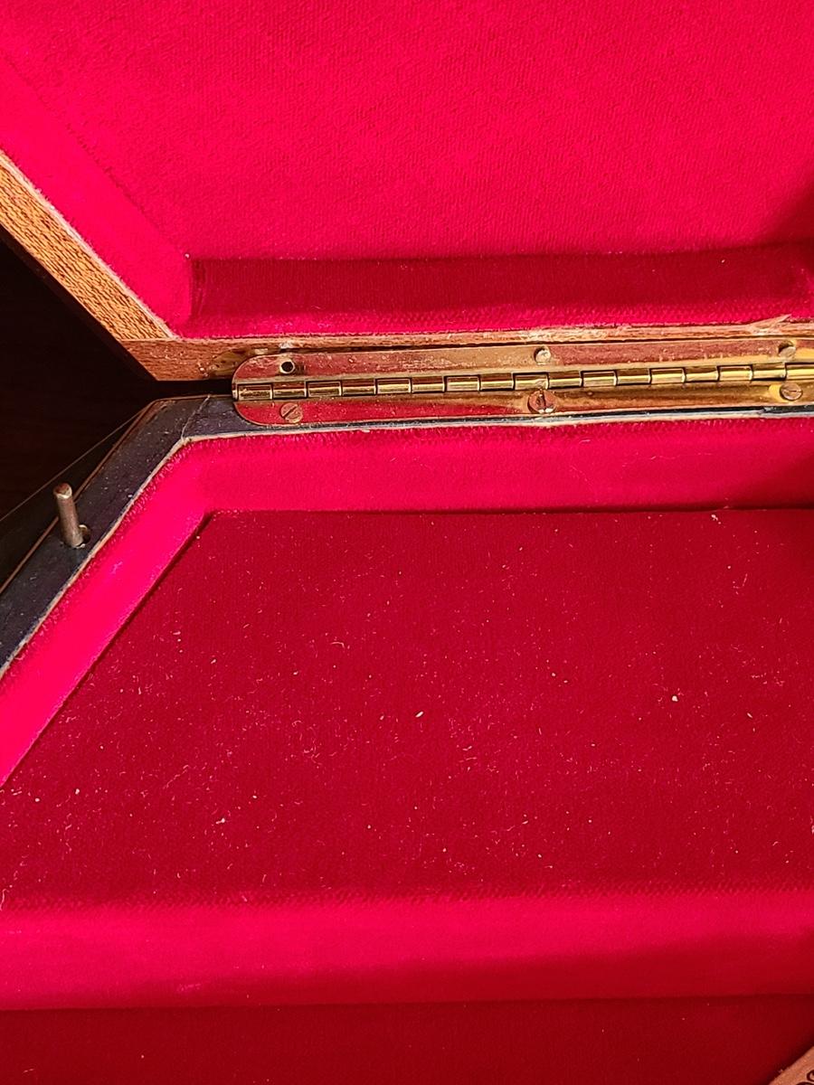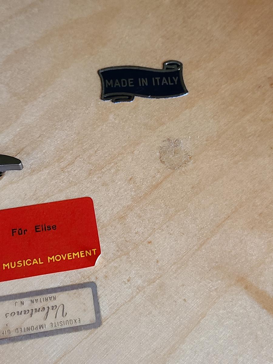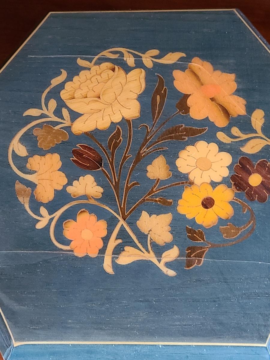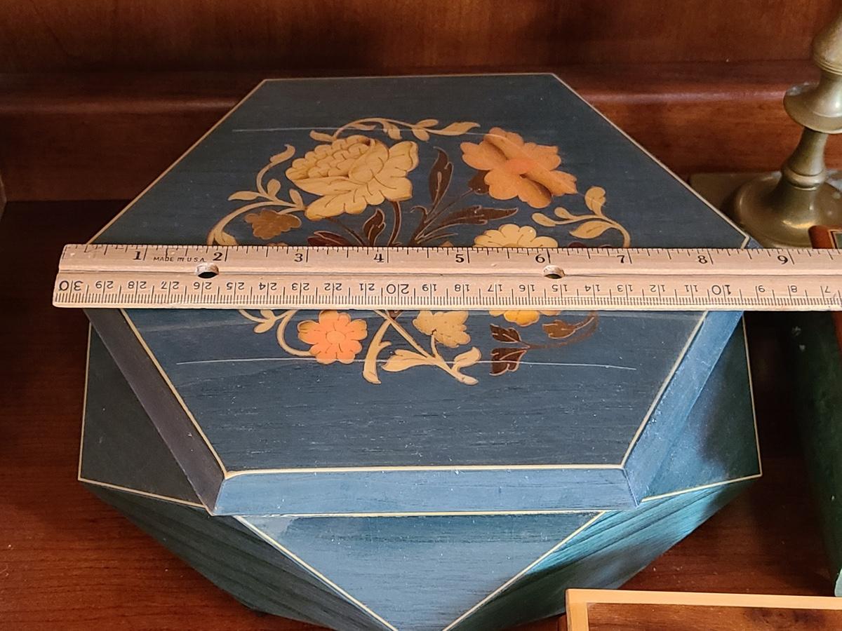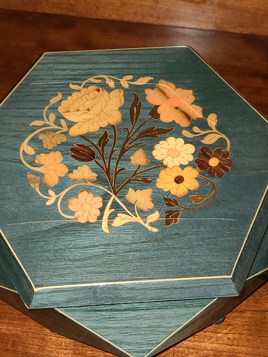 Three different music boxes, all work. The largest has age cracks on the topped the hinge needs a repair. Comes with a pair of brass candlesticks. Lovely and functional.