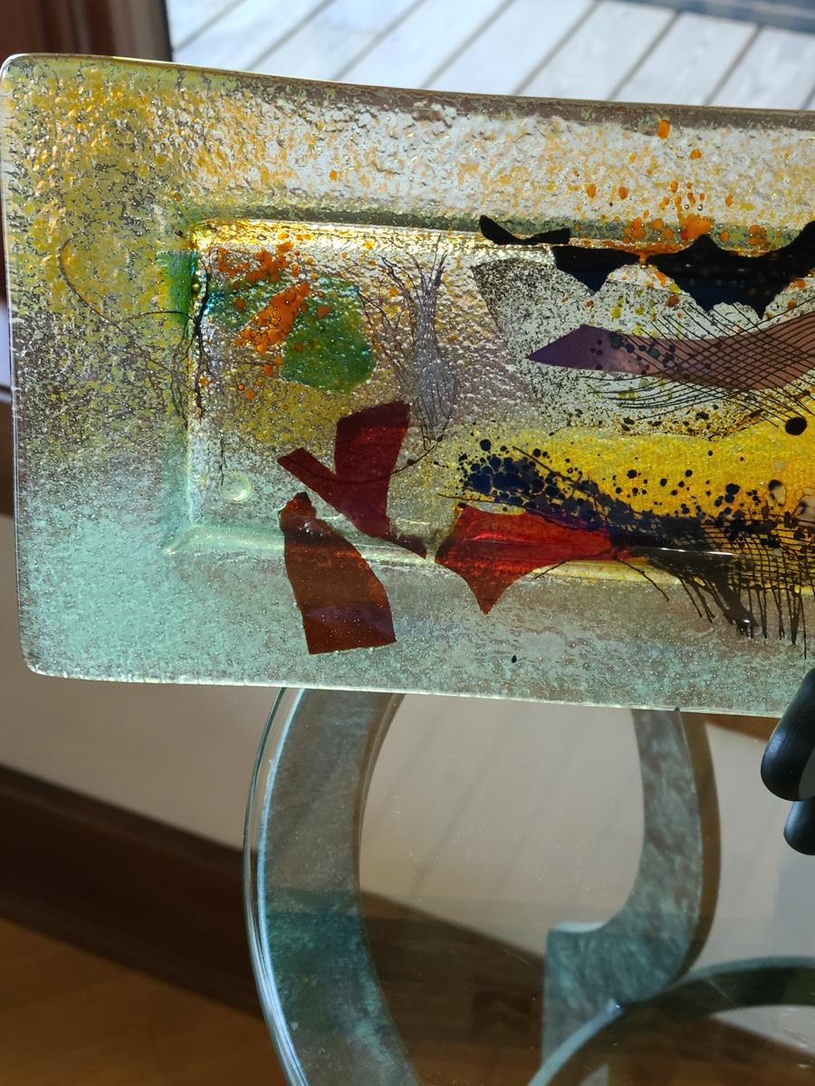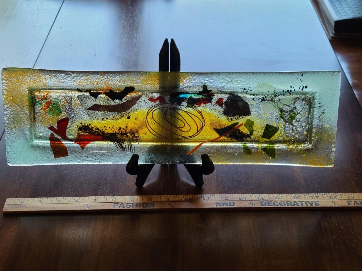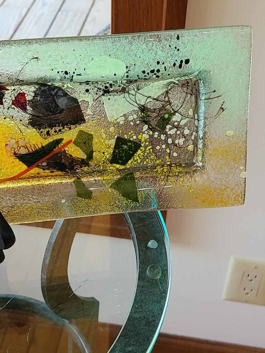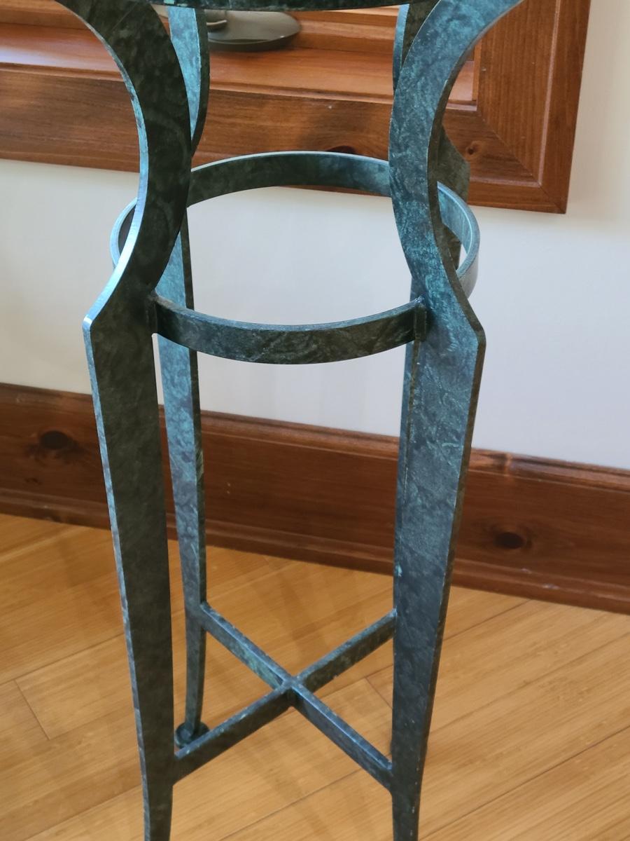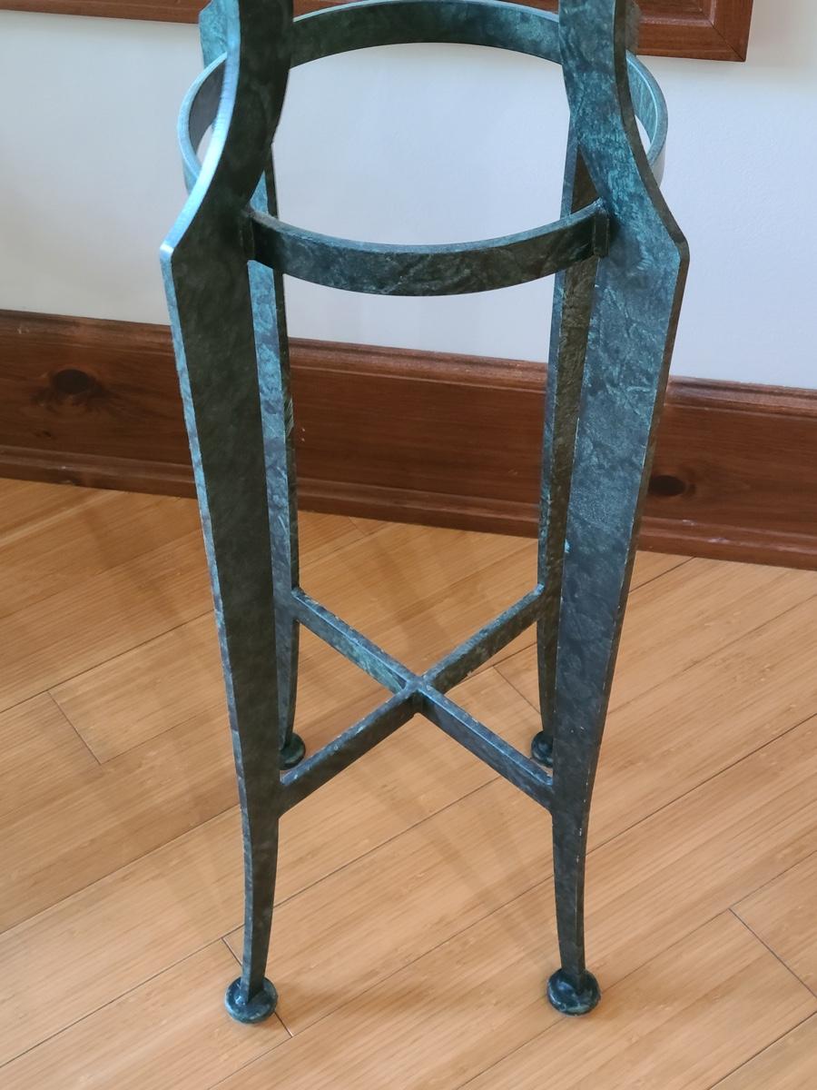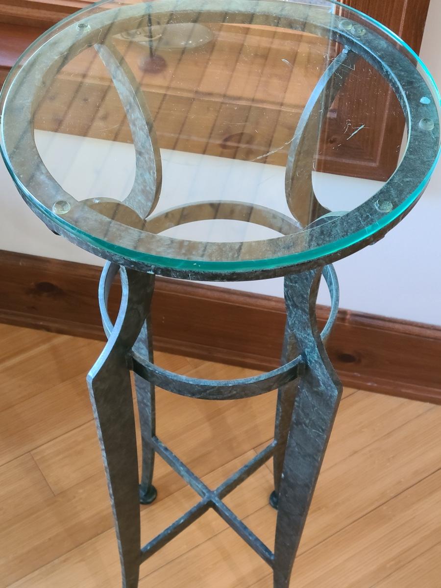 This lot is for a glass top (thick glass) vintage industrial designed table with green accents to the metal. It is heavy duty and is perfect as a plant stand, or vase table. It comes with the art glass tray that can be displayed or used for hors d'oeuvres. Please see all pictures as they are the best representation of the items. The pictures show condition, measurements if taken, and what is included in the lot. Due to the large amount that we photograph and the time frame, we are not always able to take measurements. All items unless noted, are pre-owned and have been used. If you purchased furniture, you must bring help. We do not allow one person to carry large furniture out on their own. Bring help, tools and a truck for the safety of our clients homes, and your personal safety. Company policy. Thank you.