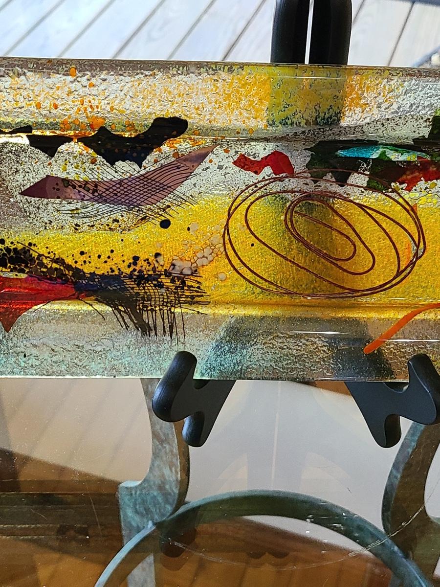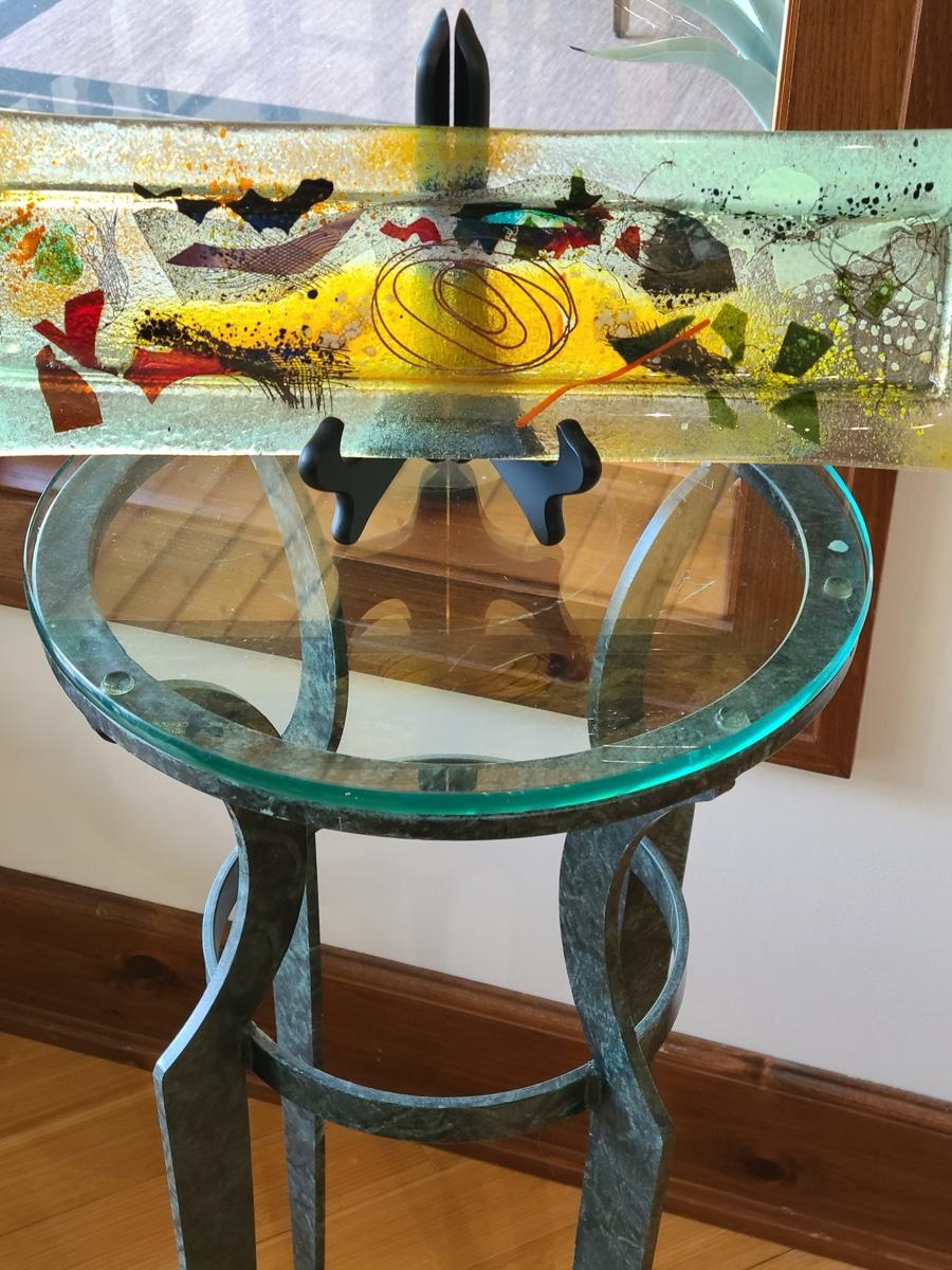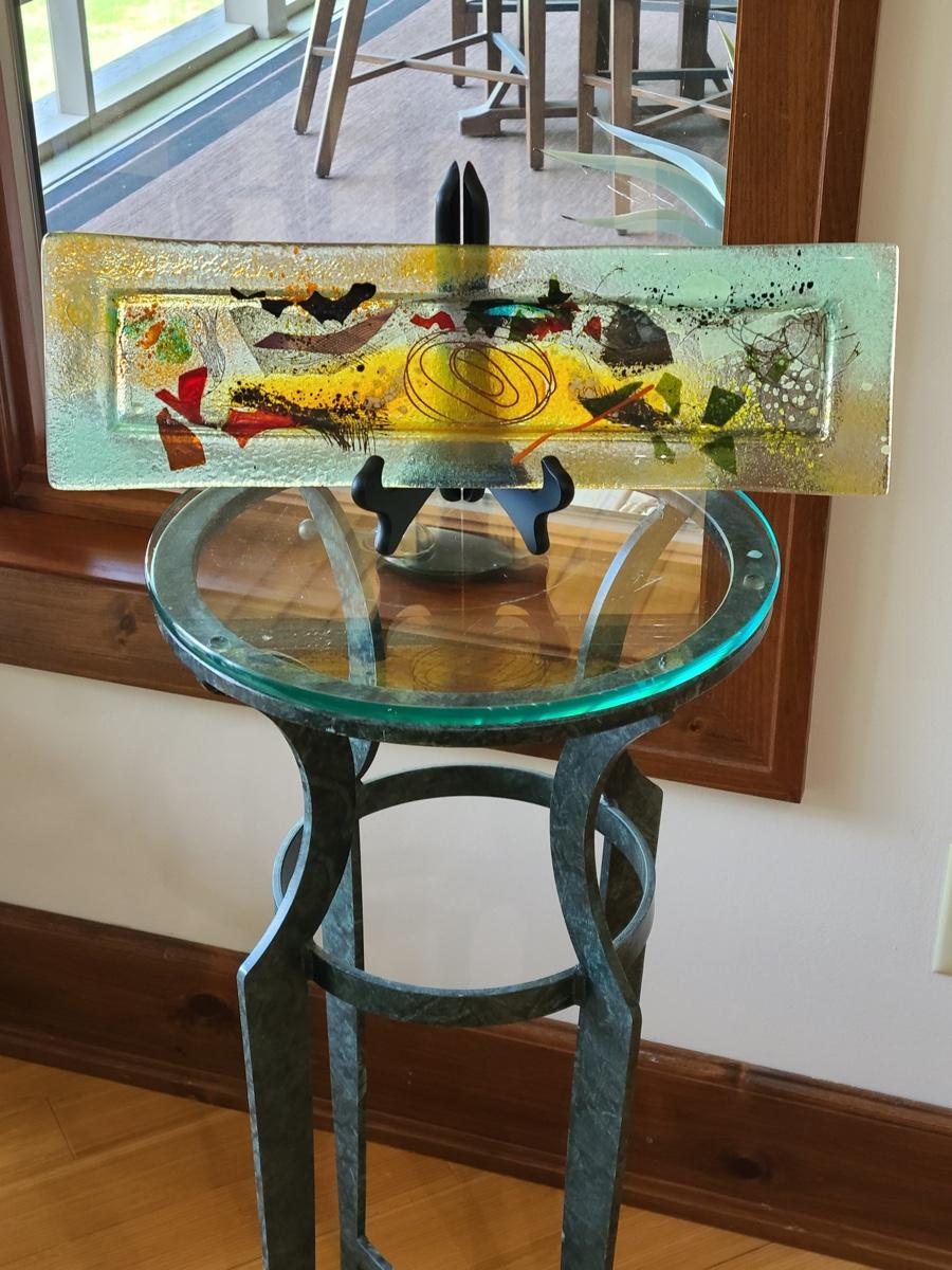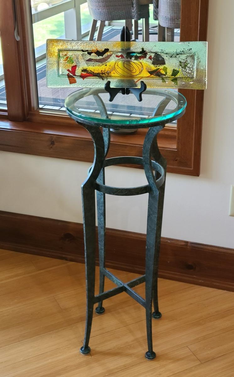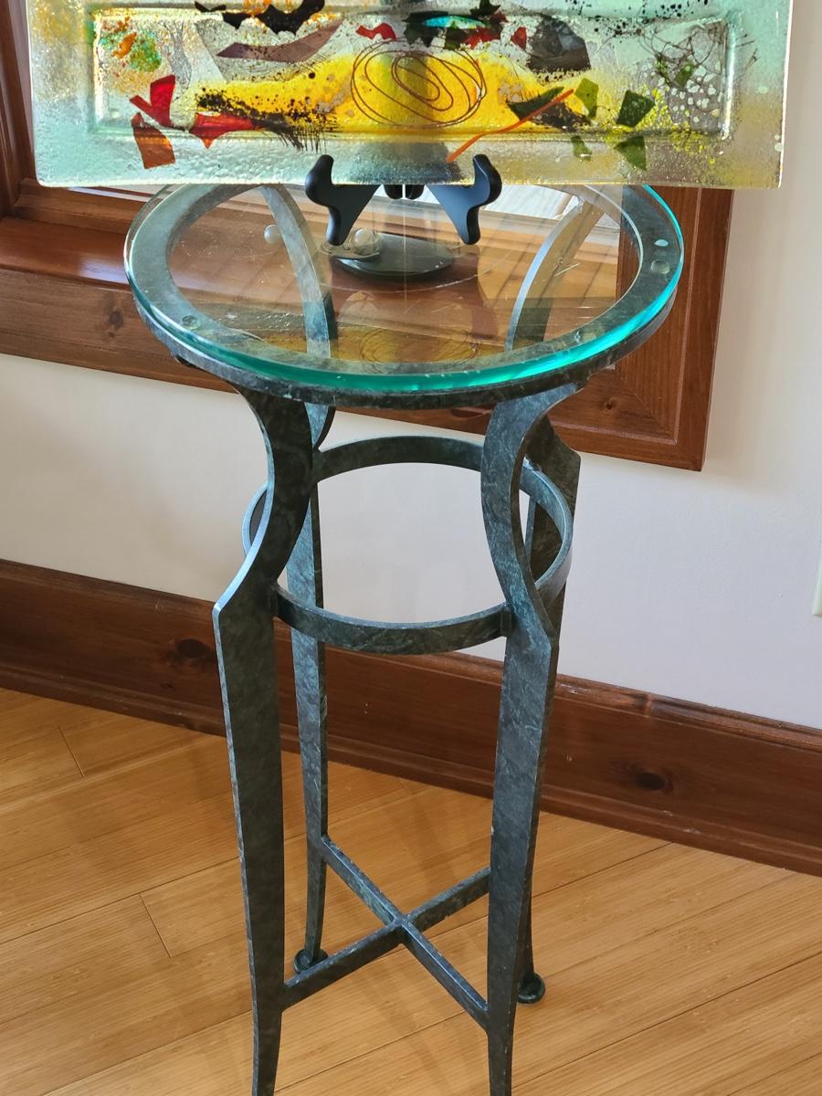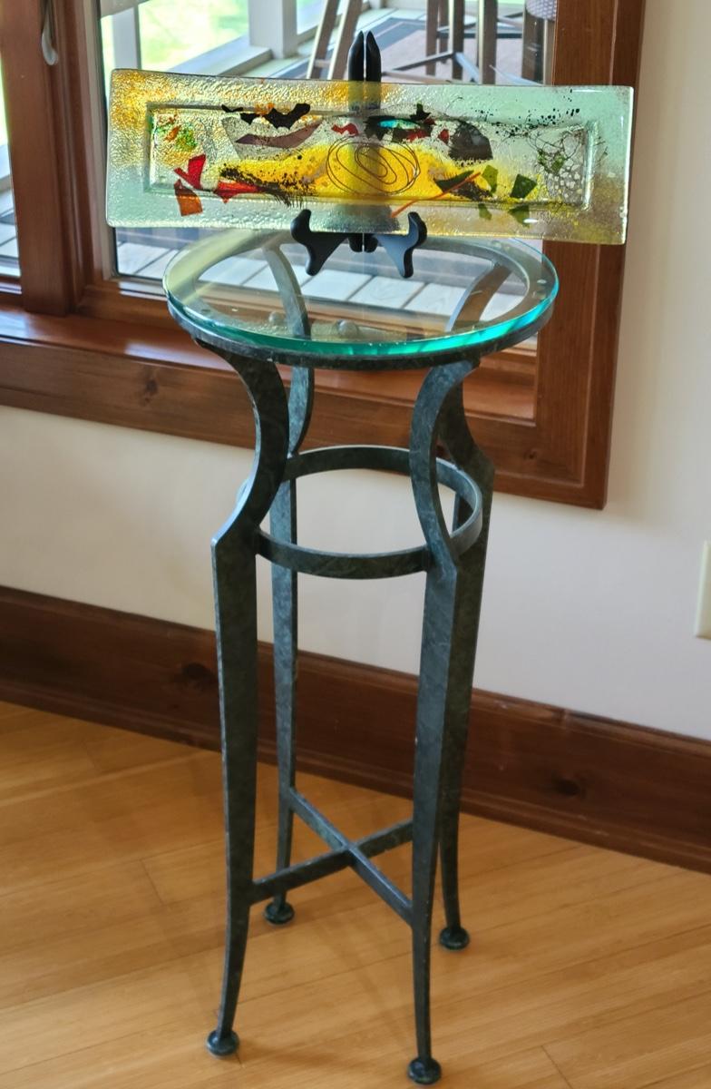Lot 363: Glass Top Industrial Designed Plant/Side Table with Art Glass Tray
