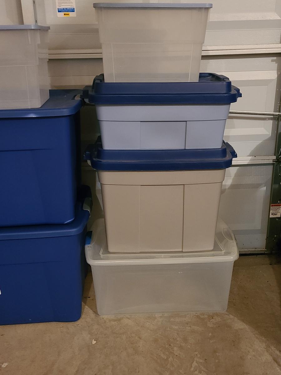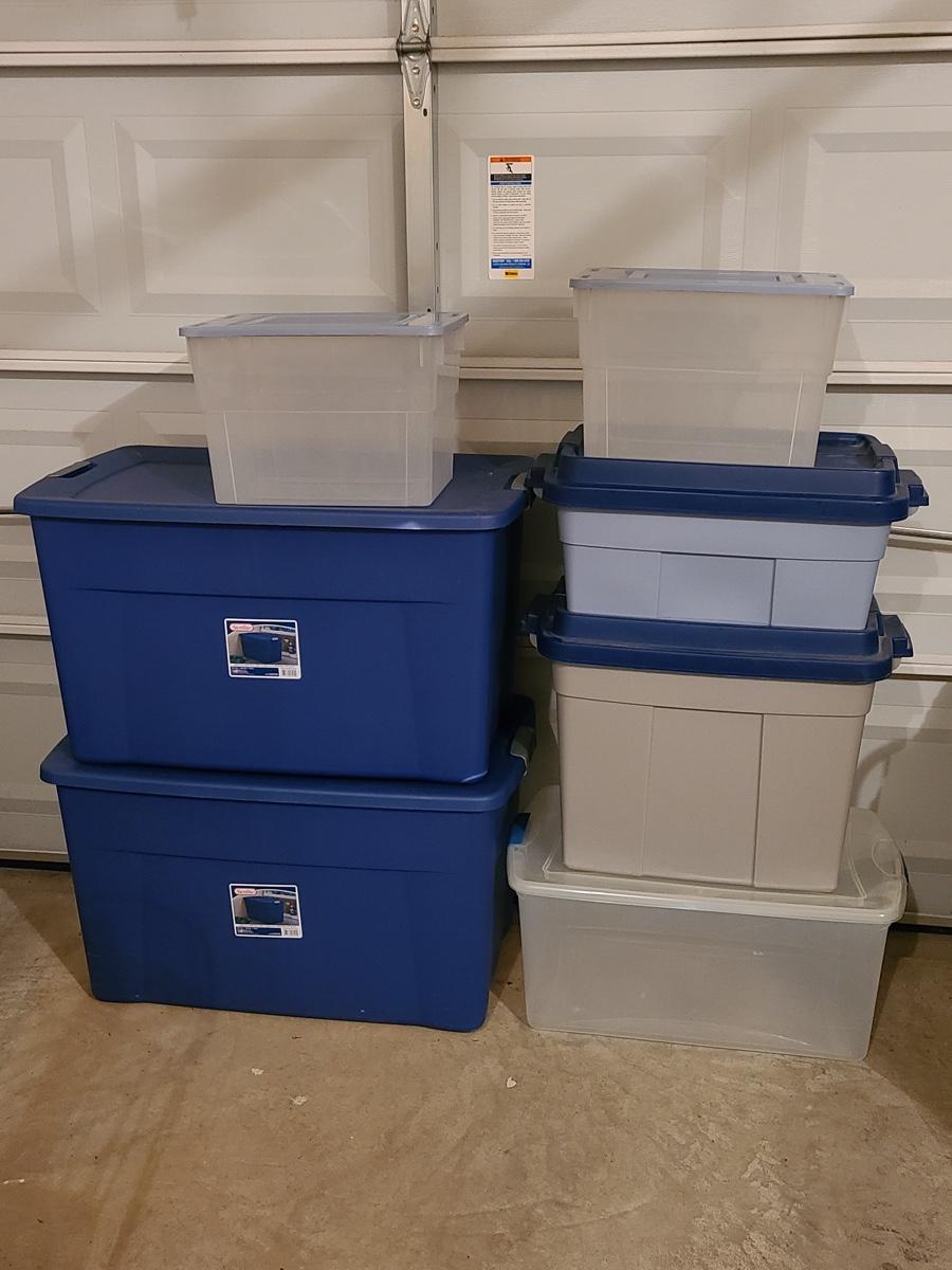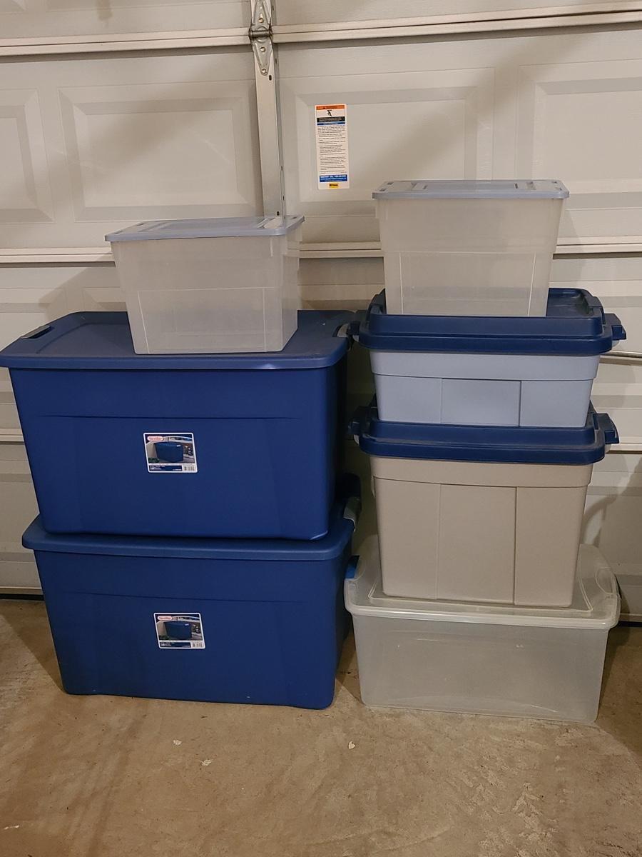 Nice lot of storage totes. Two large ones look brand new and the others are in great pre-owned shape. Please see all pictures as they are the best representation of the items. The pictures show condition, measurements if taken, and what is included in the lot. Due to the large amount that we photograph and the time frame, we are not always able to take measurements. All items unless noted, are pre-owned and have been used. If you purchased furniture, you must bring help. We do not allow one person to carry large furniture out on their own. Bring help, tools and a truck for the safety of our client’s homes, and your personal safety. Company policy. Thank you.