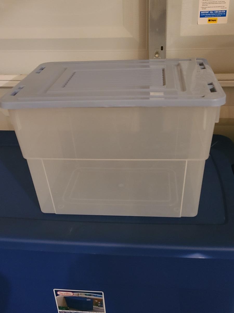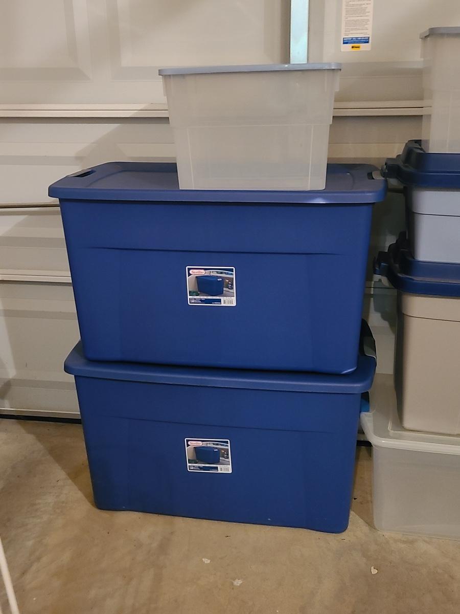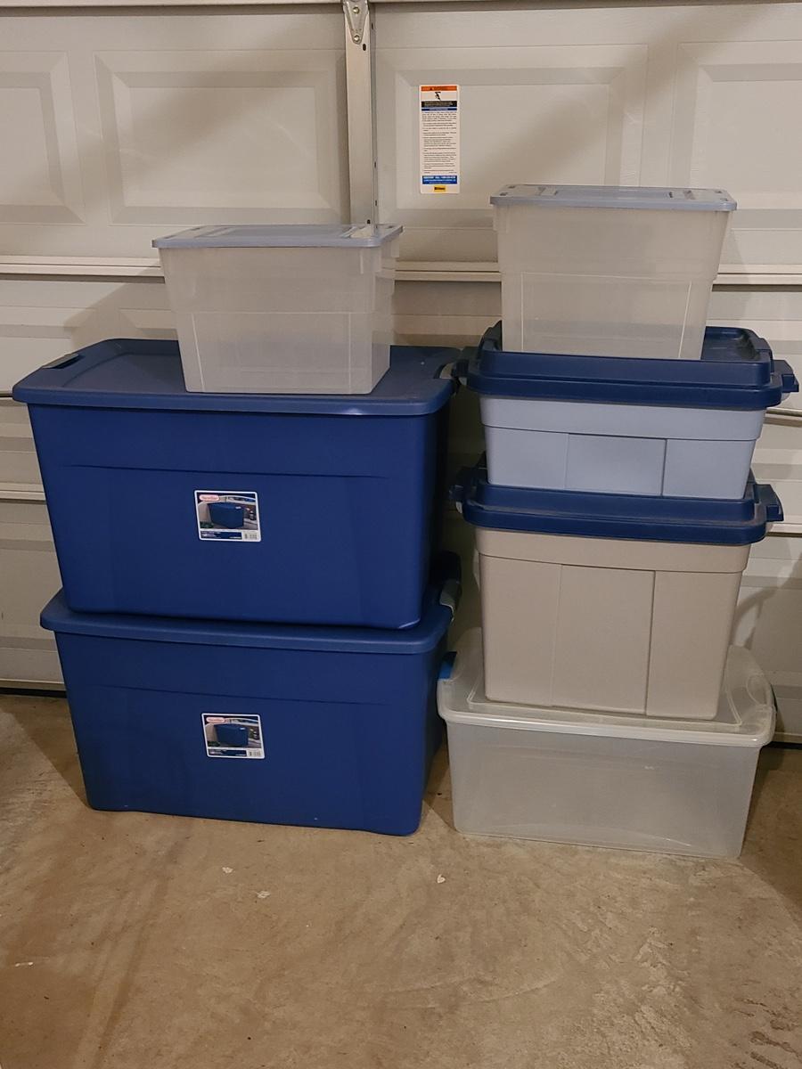 Nice lot of storage totes. Two large ones look brand new and the others are in great pre-owned shape. Please see all pictures as they are the best representation of the items. The pictures show condition, measurements if taken, and what is included in the lot. Due to the large amount that we photograph and the time frame, we are not always able to take measurements. All items unless noted, are pre-owned and have been used. If you purchased furniture, you must bring help. We do not allow one person to carry large furniture out on their own. Bring help, tools and a truck for the safety of our client’s homes, and your personal safety. Company policy. Thank you.