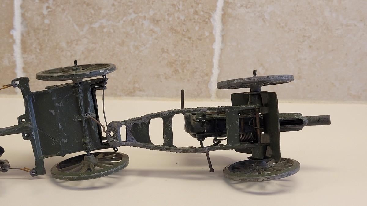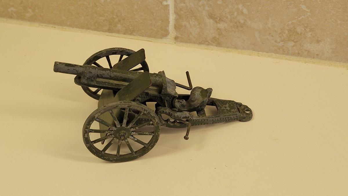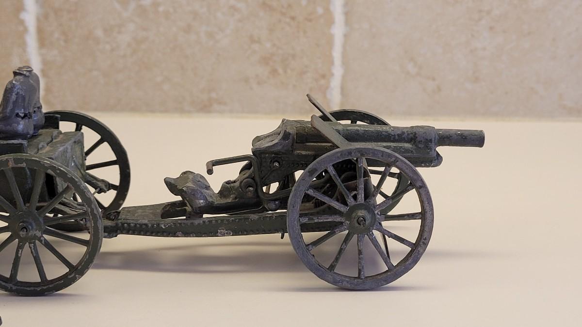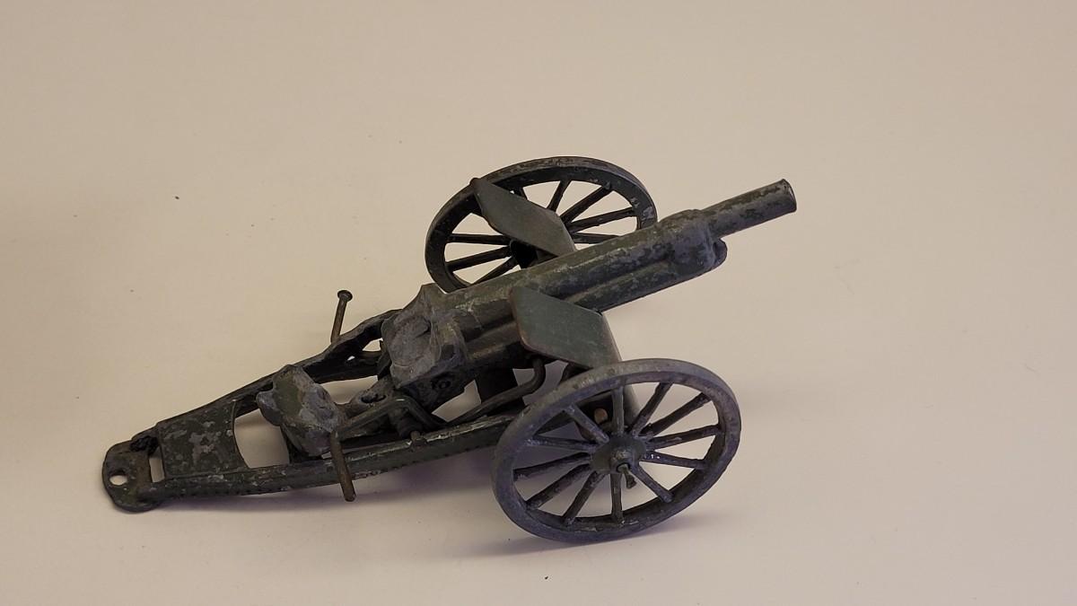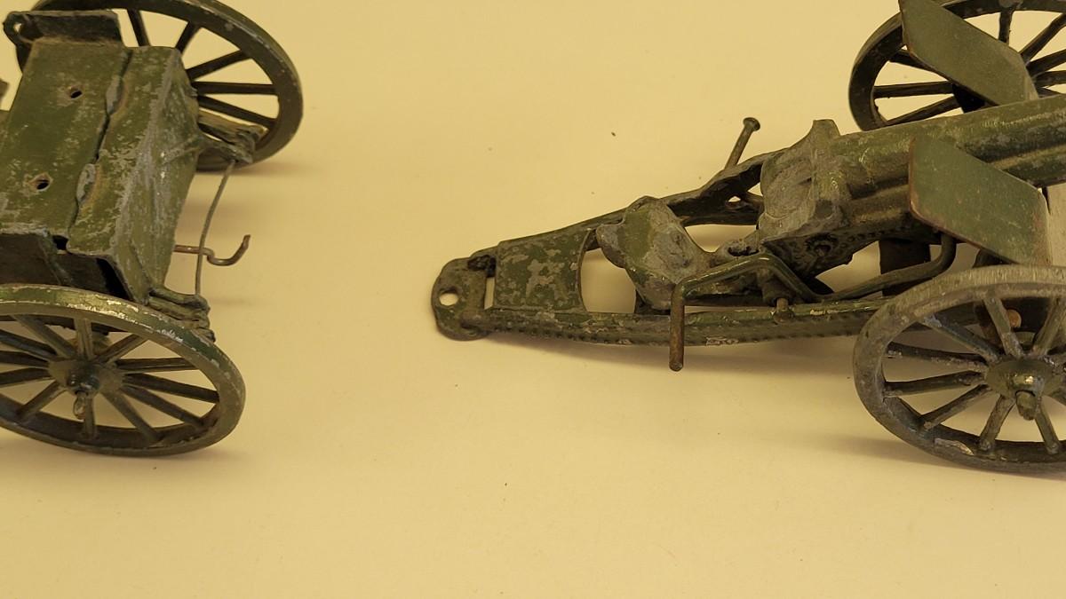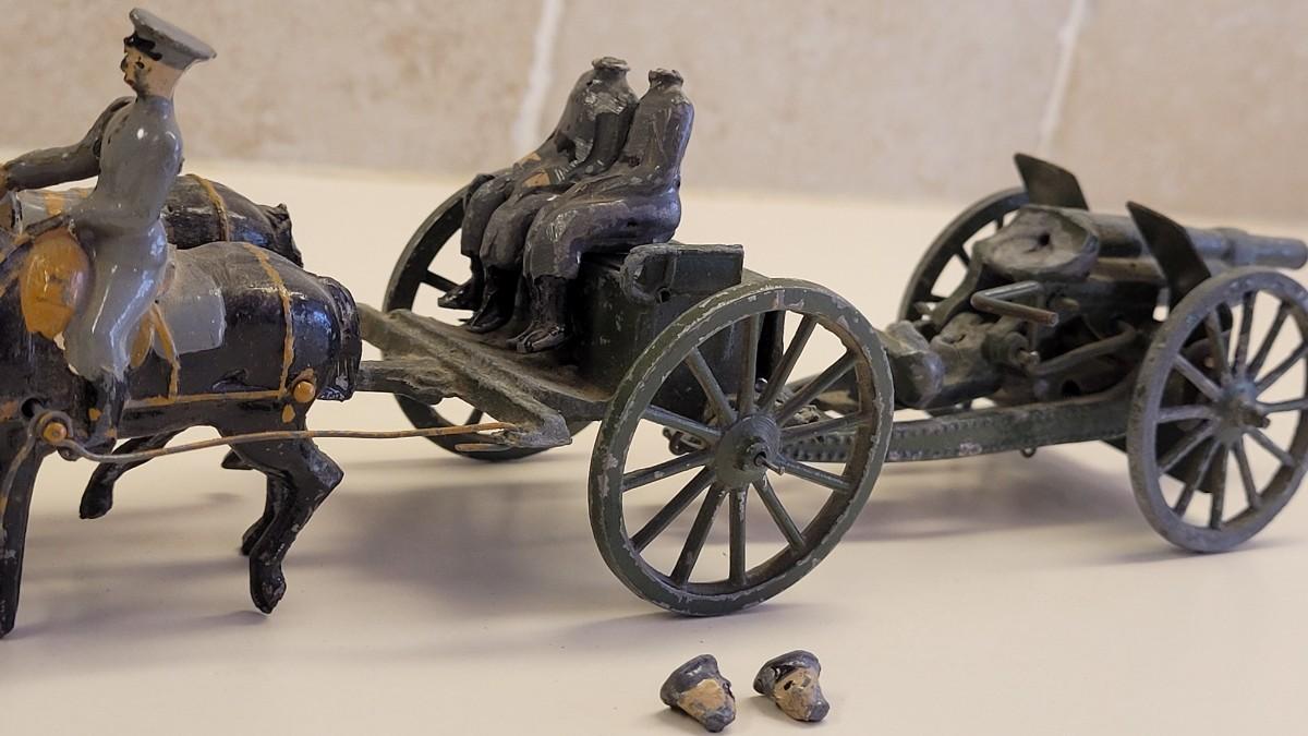 Lot 3: Late 1870's or Early 1880's Child's Cast Iron Cavalry Artillery Set with 4 Horses & 2 Riders, 2 Drivers Driving the Caisson Towing the Artillery Piece