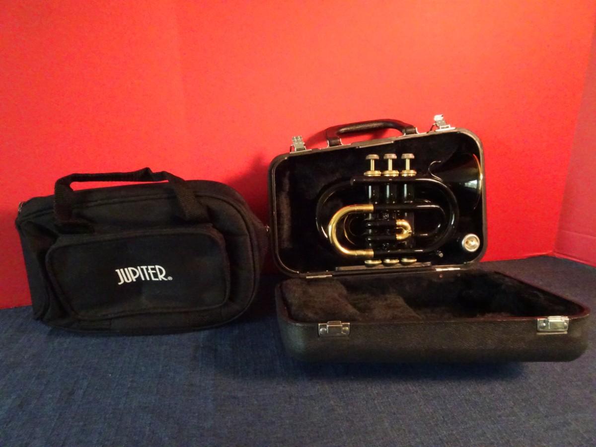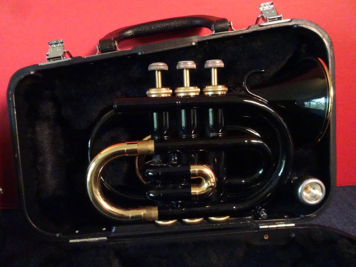 LOT 3 JUPITER BLACK AND GOLD POCKET TRUMPET WITH HARD AND SOFT CASE