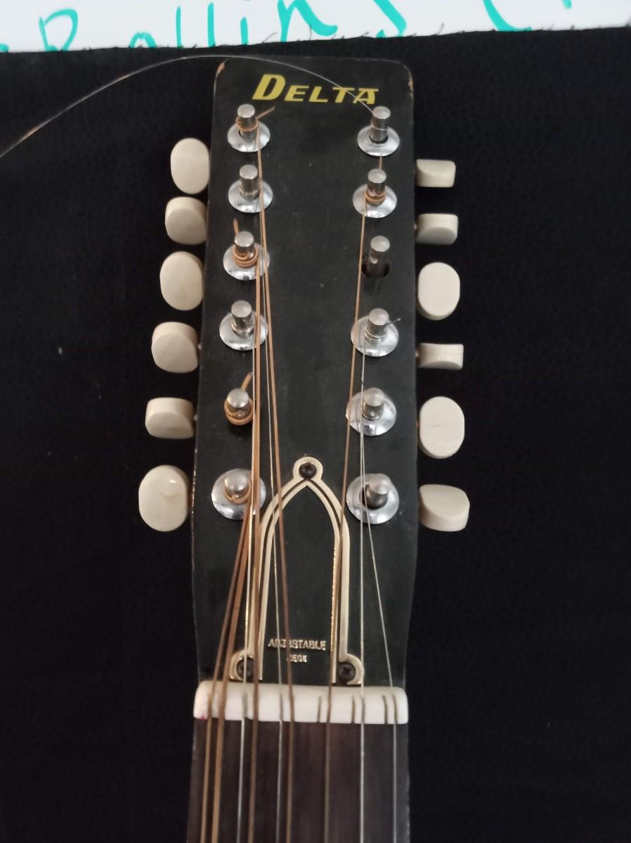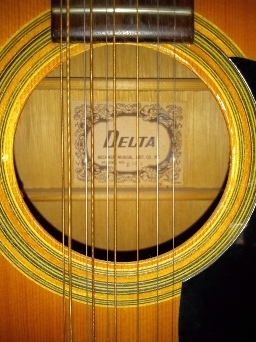 LOT 3 DELTA ACOUSTIC GUITAR WITH HARDSIDED CASE AND STOOL