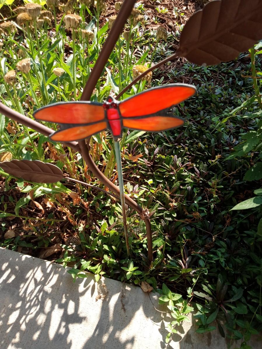 FLOWER IS 36" TALL, INCLUDES A GLASS BUTTERFLY
