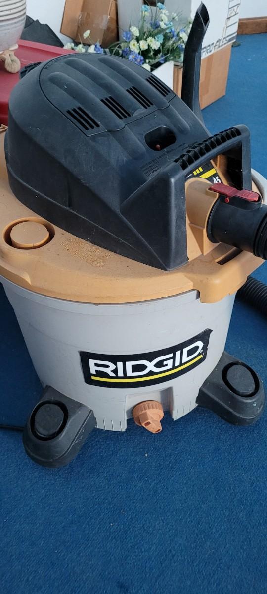 Vintage RIGID Shop Vacuum with a couple of attachments and still many years left.