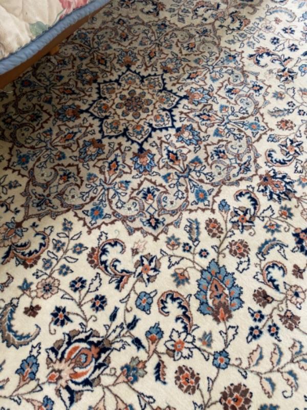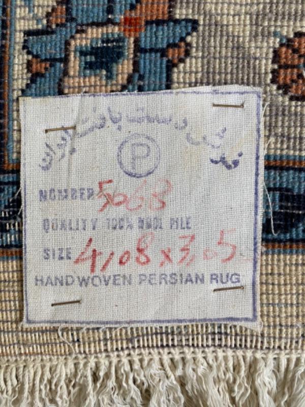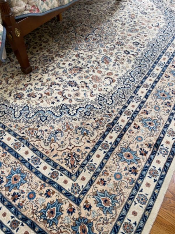 Beautiful Large 10’ x 13’9” Blue and cream Tabriz oriental rug