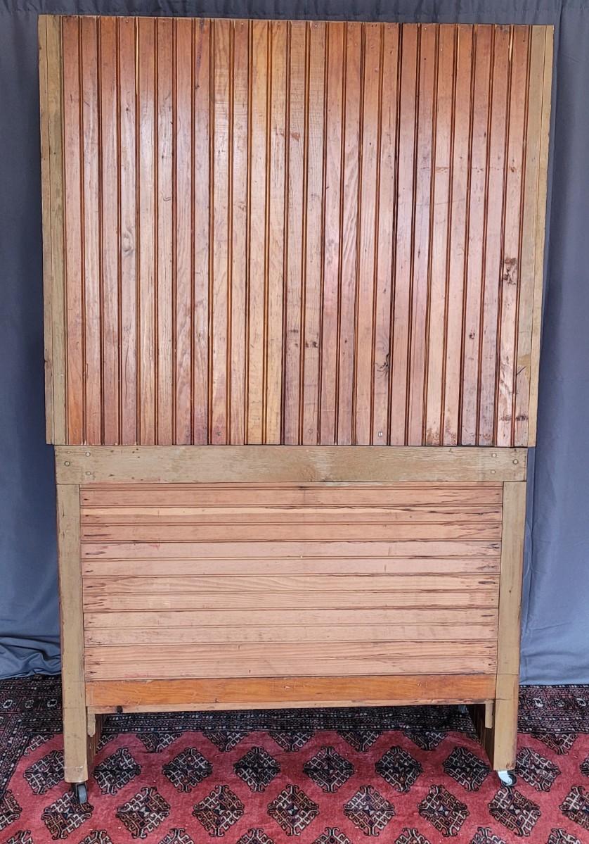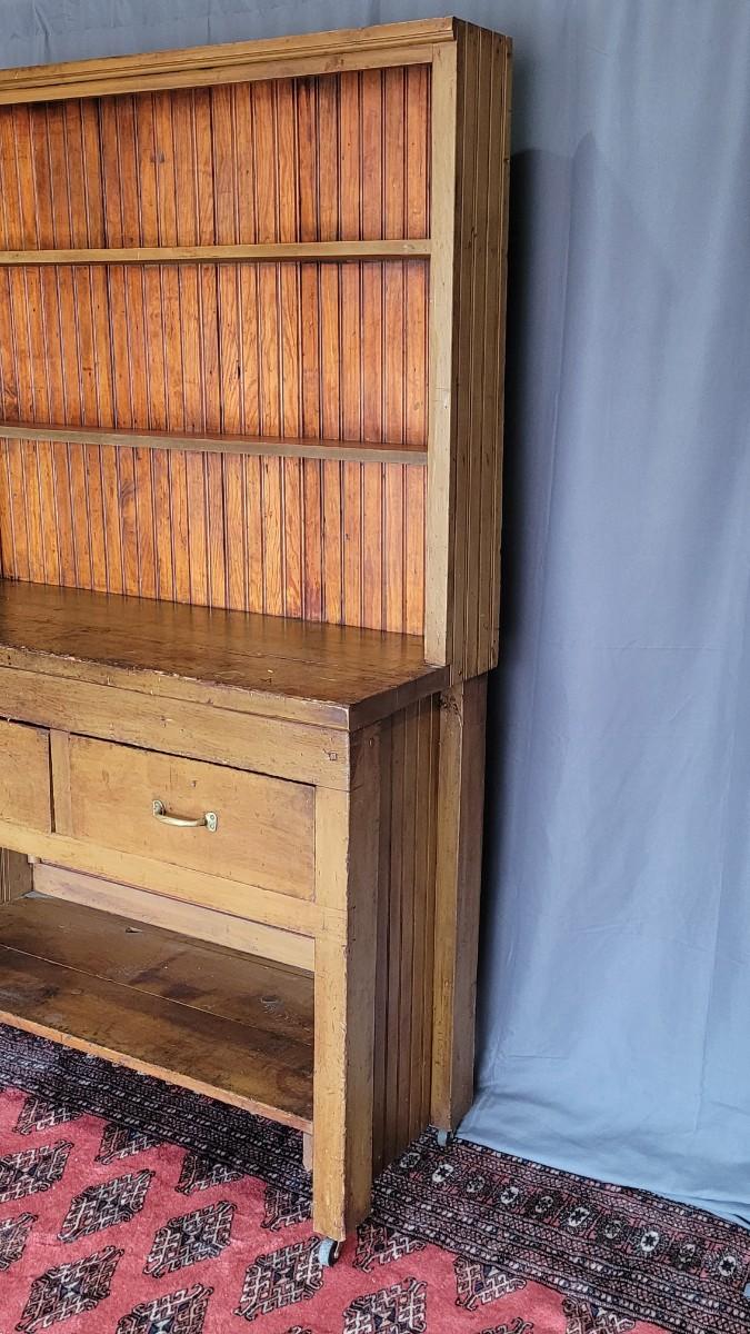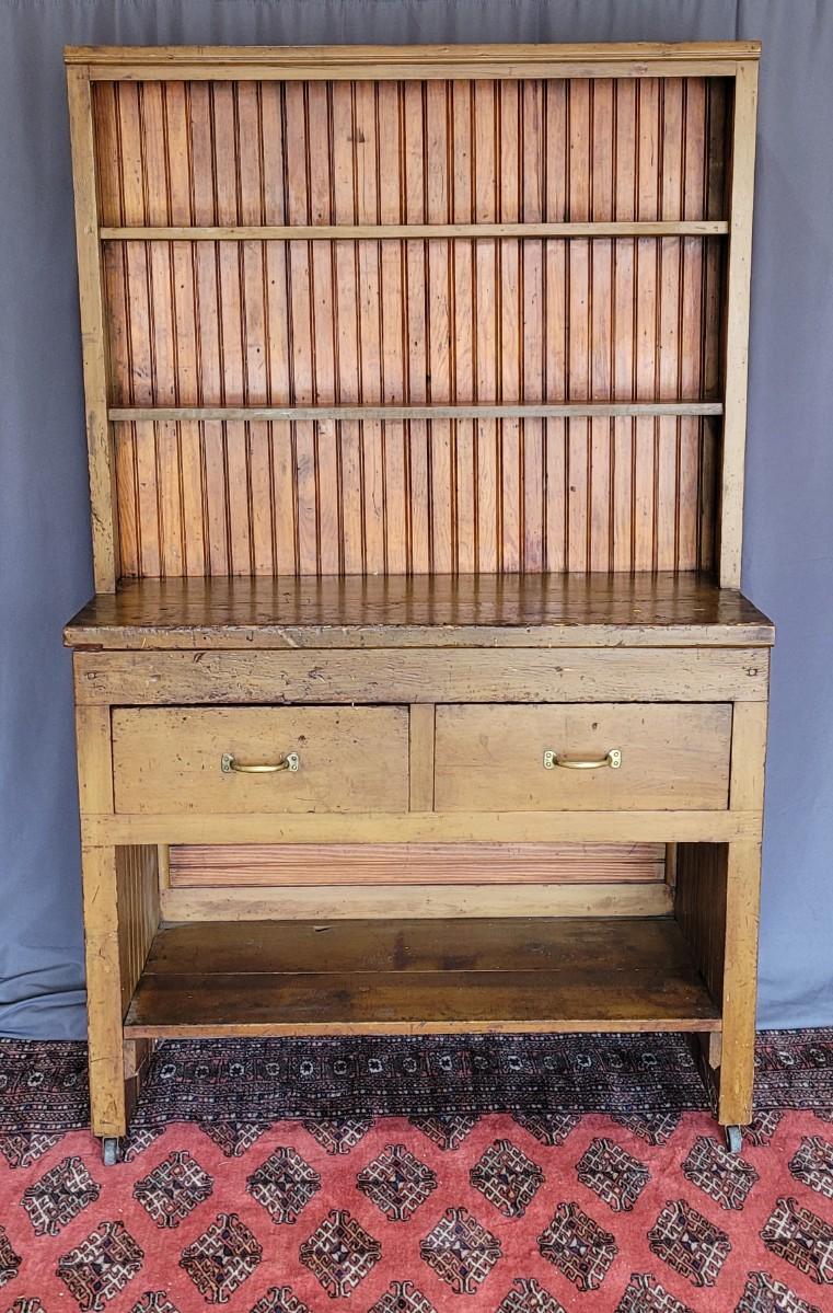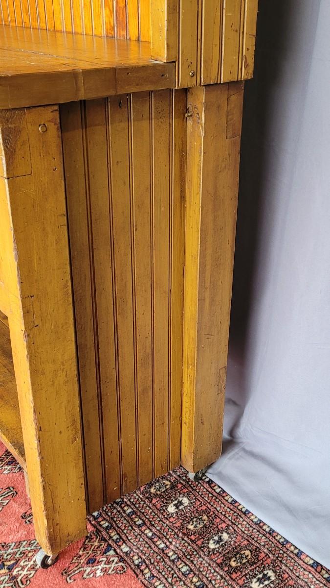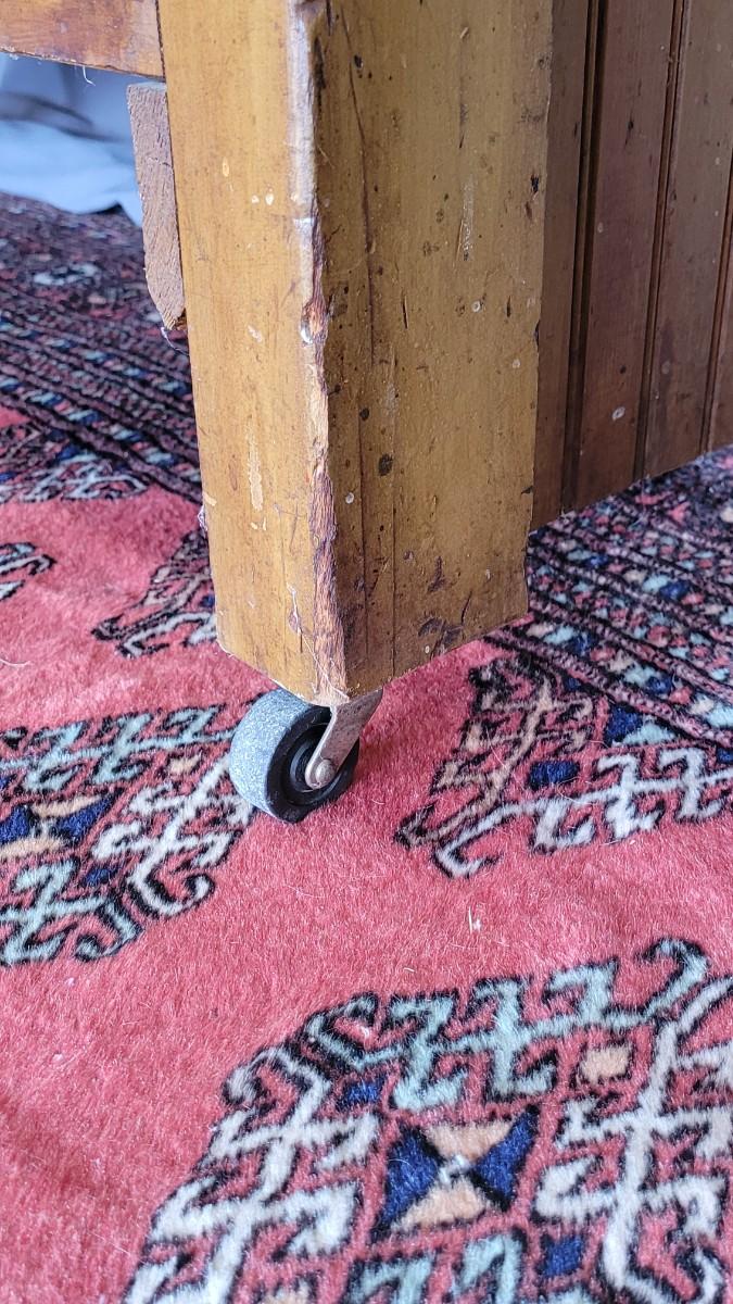 This hutch is on casters so it is easy to move. Also, it is not very heavy which makes loading easier. Has some wear on counter surface that adds to its charm and character. In the garage and ready to load!
