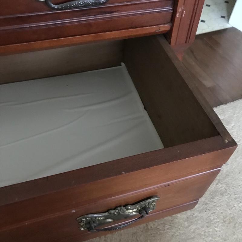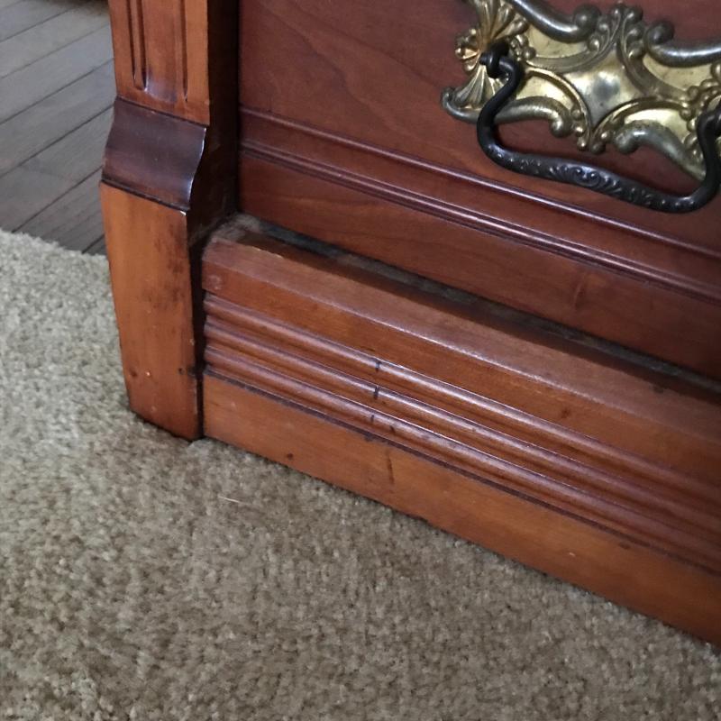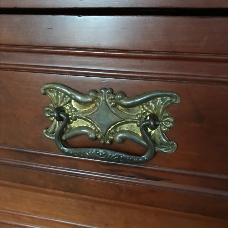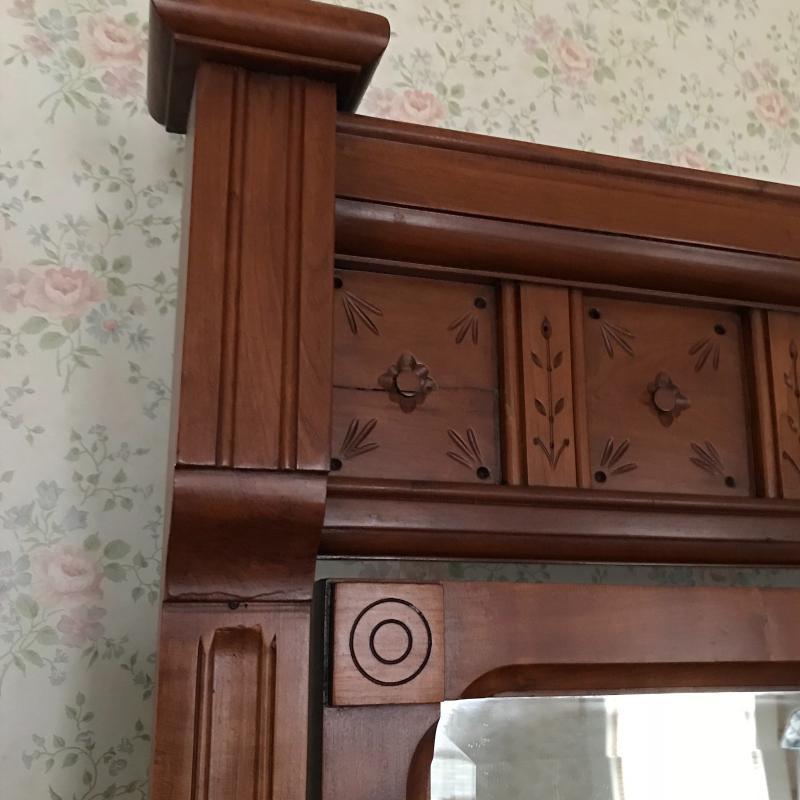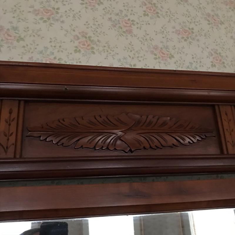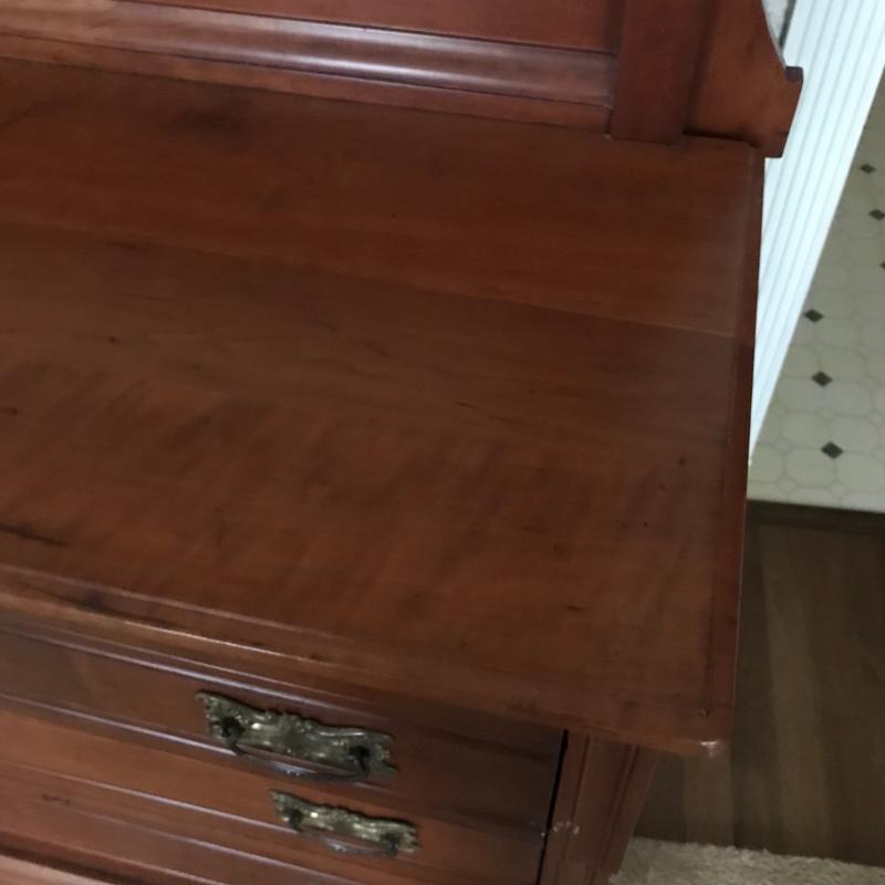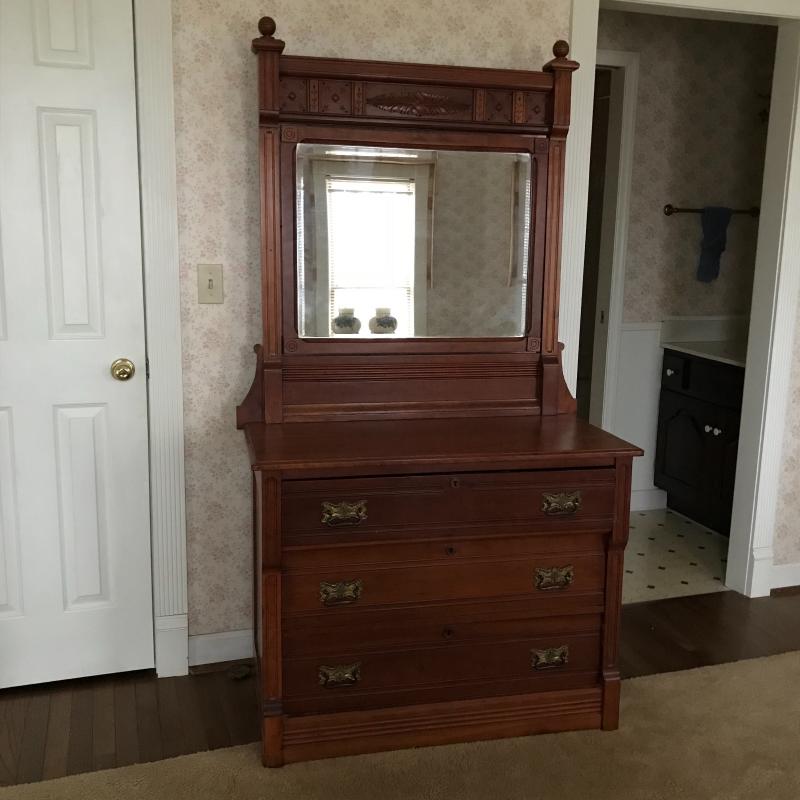 Beautiful, unique hand carved antique dresser with mirror. Mirror tilts. Drawers slide with ease. In great shape. Measures approx. 39.5 x 19.5 x 74”.