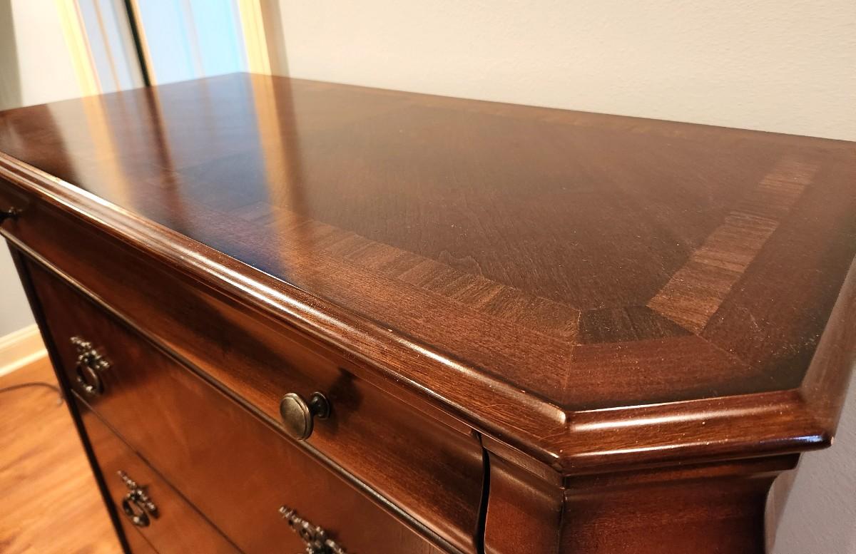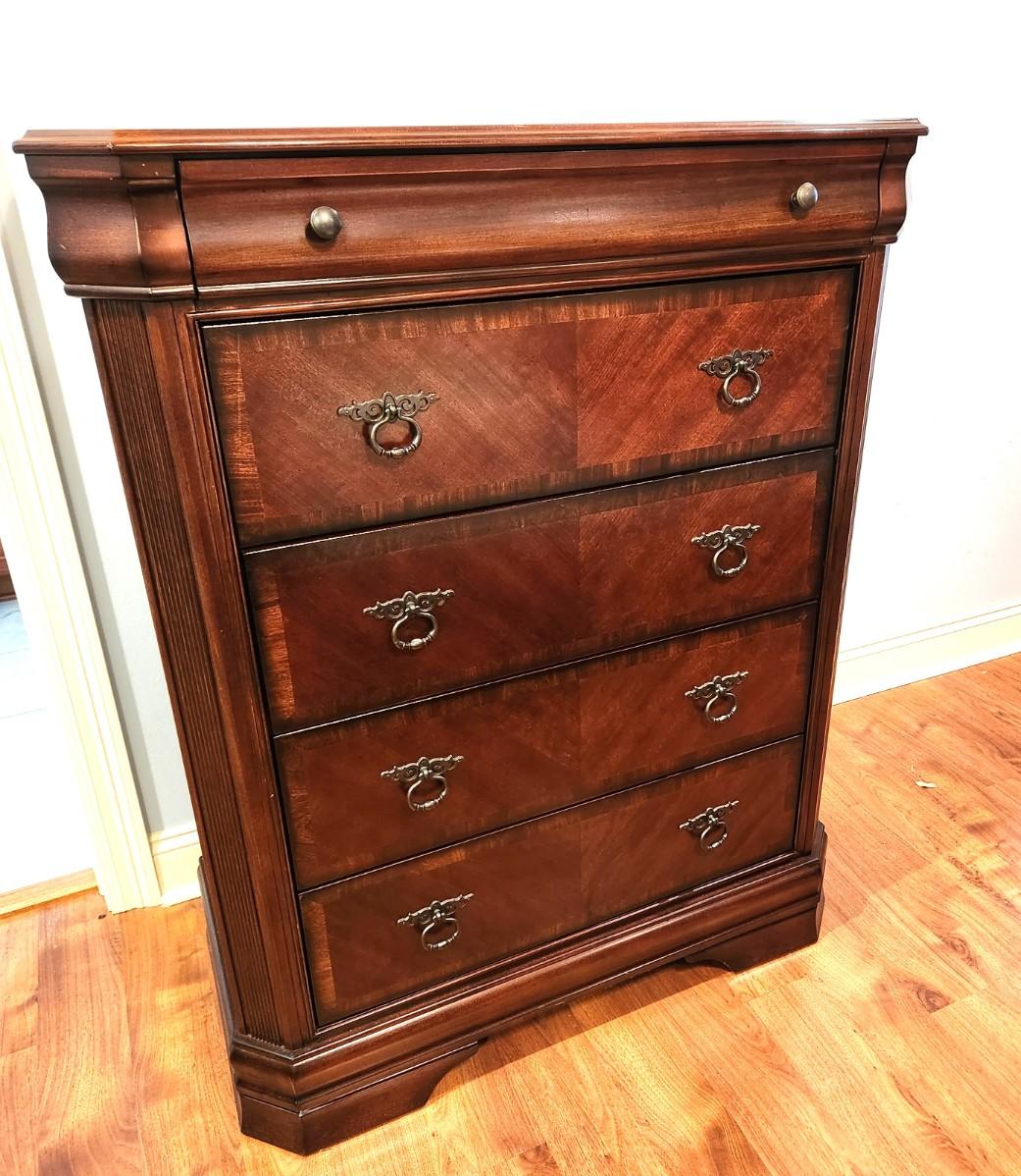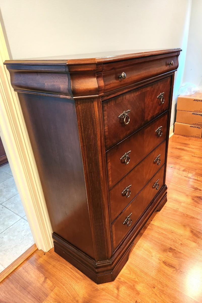 Nice gently used Ashly Furniture Co. 5 drawer Chest of Drawers, 40" across, 19" deep, 50" tall. Solid wood. This item is upstairs.