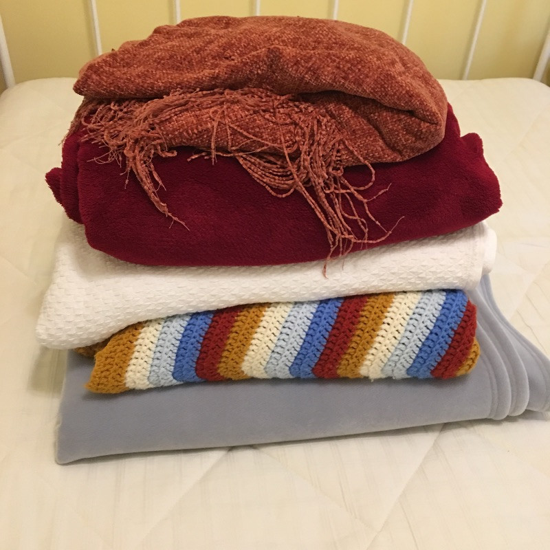 Be prepared for cool fall nights with this assortment of eight blankets in total in a variety of colors. Blankets are shown on a queen bed. Bed is not included.