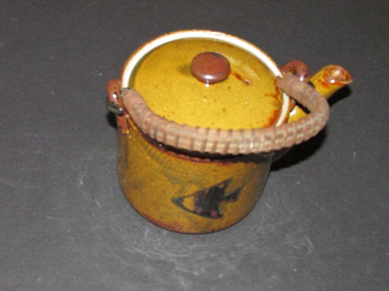 Lot 3- Brown Ceramic Teapot with Fish Design