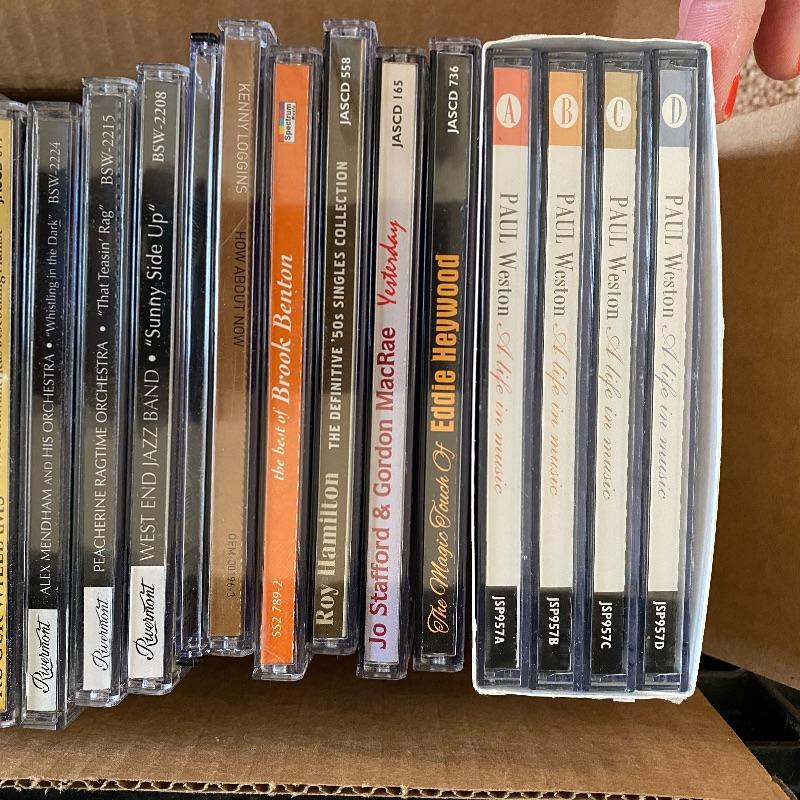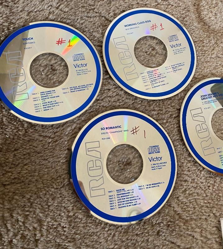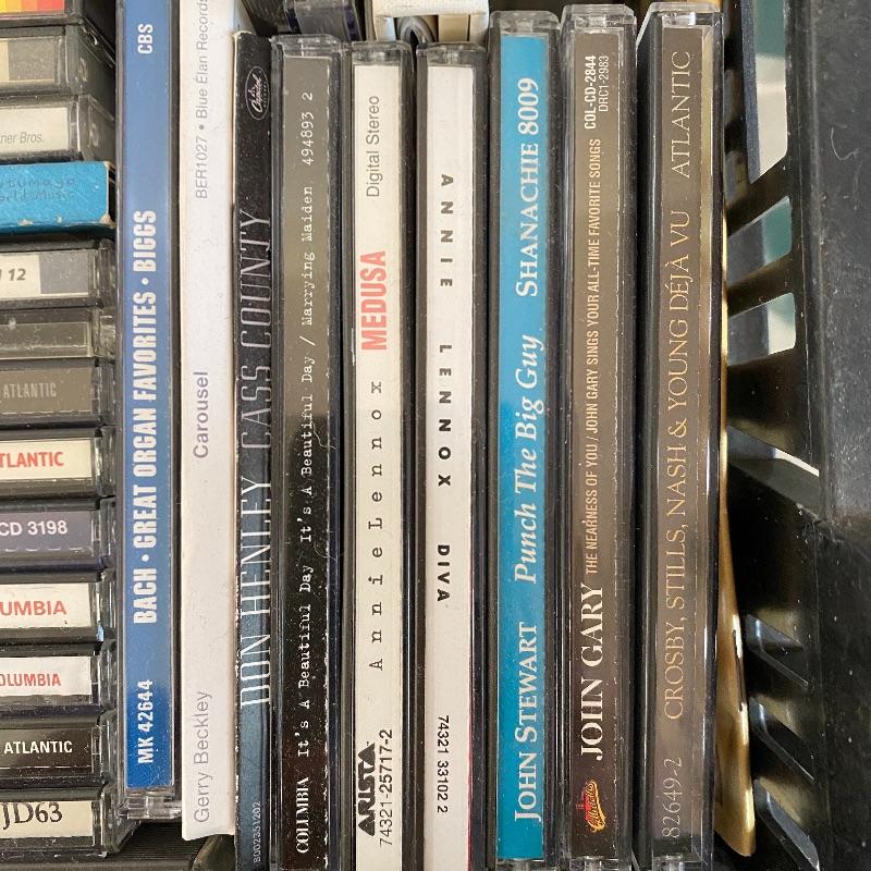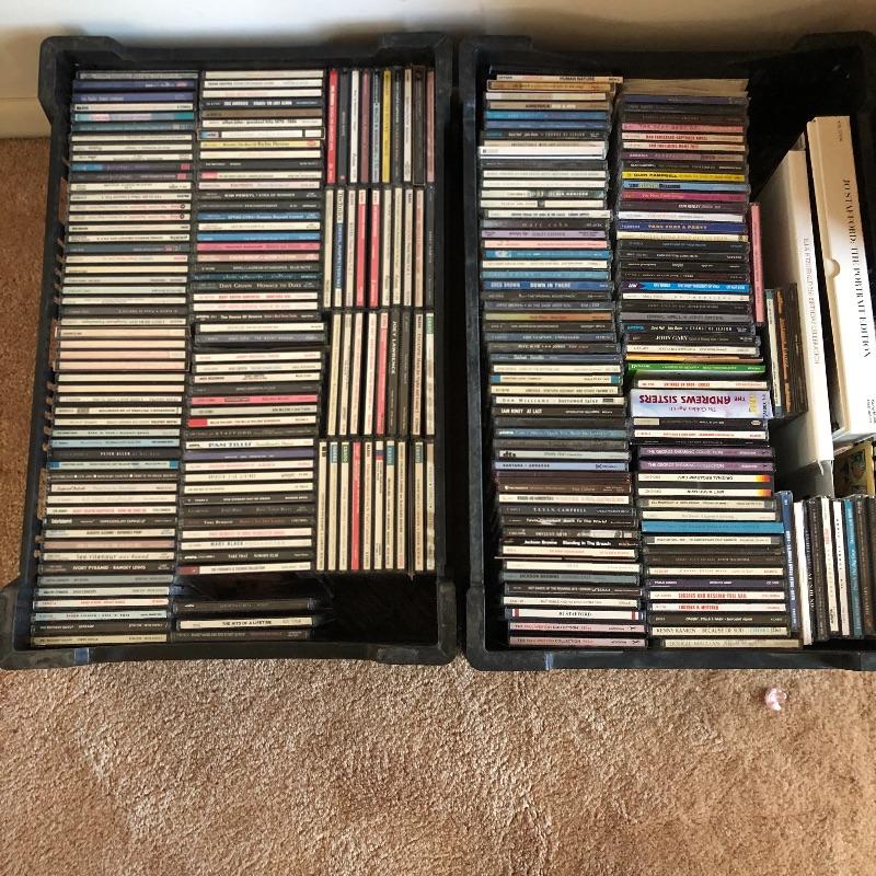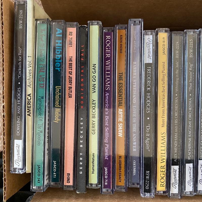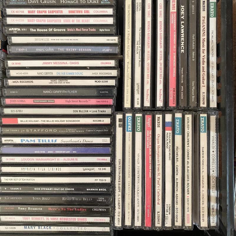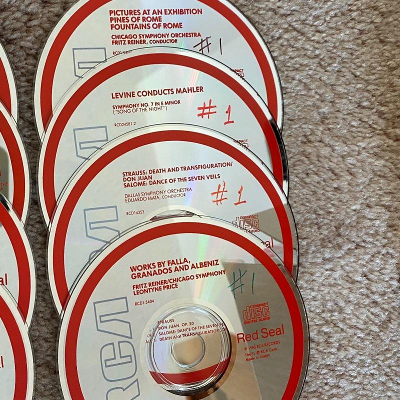 Keep yourself entertained with this large collection of CDs. Lot includes over two hundred CDs in a variety of genres including Jackson Browne, Ella Fitzgerald, Marky Mark and the Funky Bunch, Frank Sinatra, Rodgers & Hammerstein, Tony Bennett and many more. Did not verify every case matched with a corresponding CD. Includes a handful of Red Seal CDs as well as Blue CDs from RCA. They don’t have cases and have #1 written on them. Appear to be in great condition.