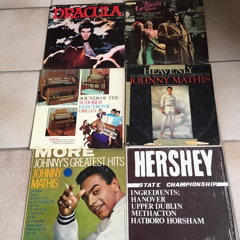 Collection of over fifty albums including Rocky , Dracula , Garfunkel , Partridge Family , Mantovani and many more. Albums have been used and show normal wear and tear.