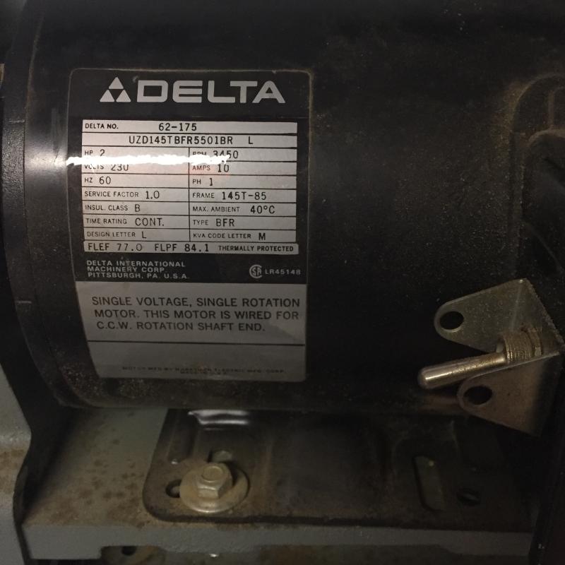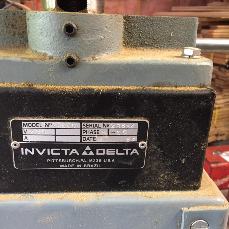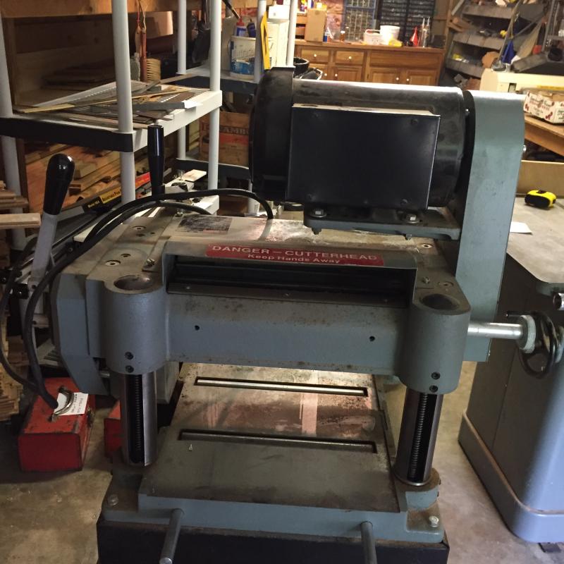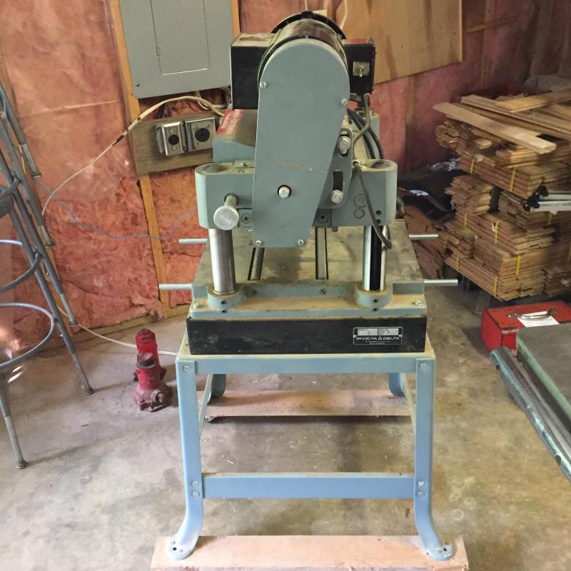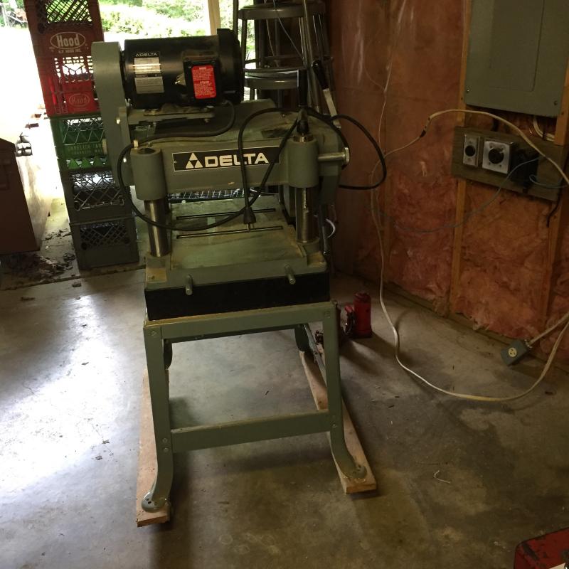 Delta Planer in good working order. Voltage is more than 110. See pictures. Planet is on casters. This lot is substantial in weight so you will need help moving it. Measures 27”x 30.5” x 50.5” For local pickup only in Horseshoe, NC.