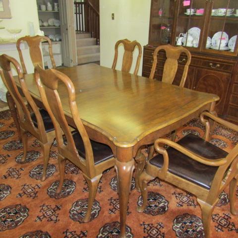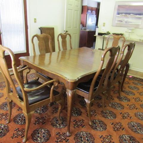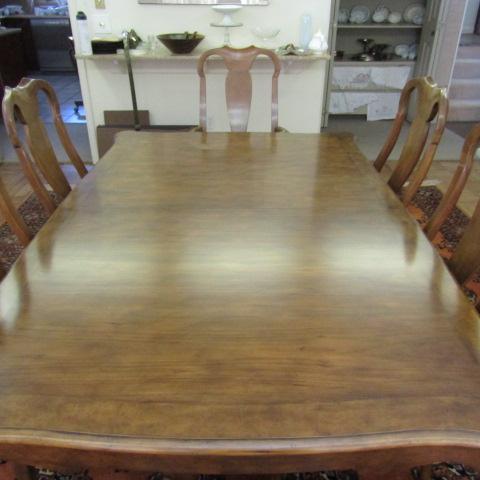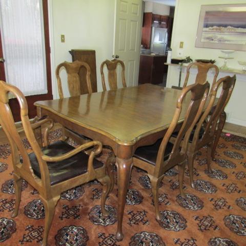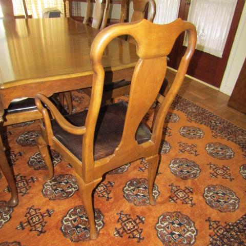 BAKER FURNITURE SOLID WOOD TABLE AND 8 CHAIRS (2 CAPTAIN)