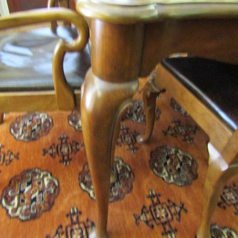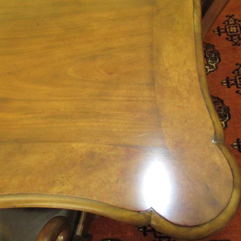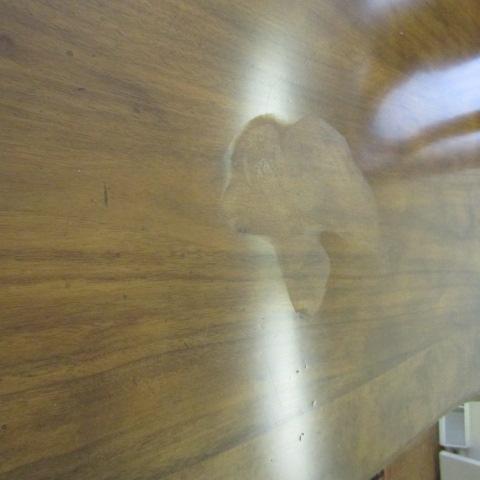 TABLE HAS A 6" X 4" (APPROX) AREA WHERE A SOLVENT WAS SPILLED AND DAMAGED THE FINISH (SEE PIC) OTHERWISE TABLE IS SOLID
