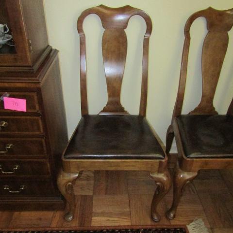 CHAIRS ARE COVERED WITH A VINYL MATERIAL AND THE SEATS ARE SAGGING. IT'S VERY EASY TO RECOVER THIS TYPE OF SEAT AND WHEN MORE PADDING IS ADDED THEY'LL BE LIKE NEW!