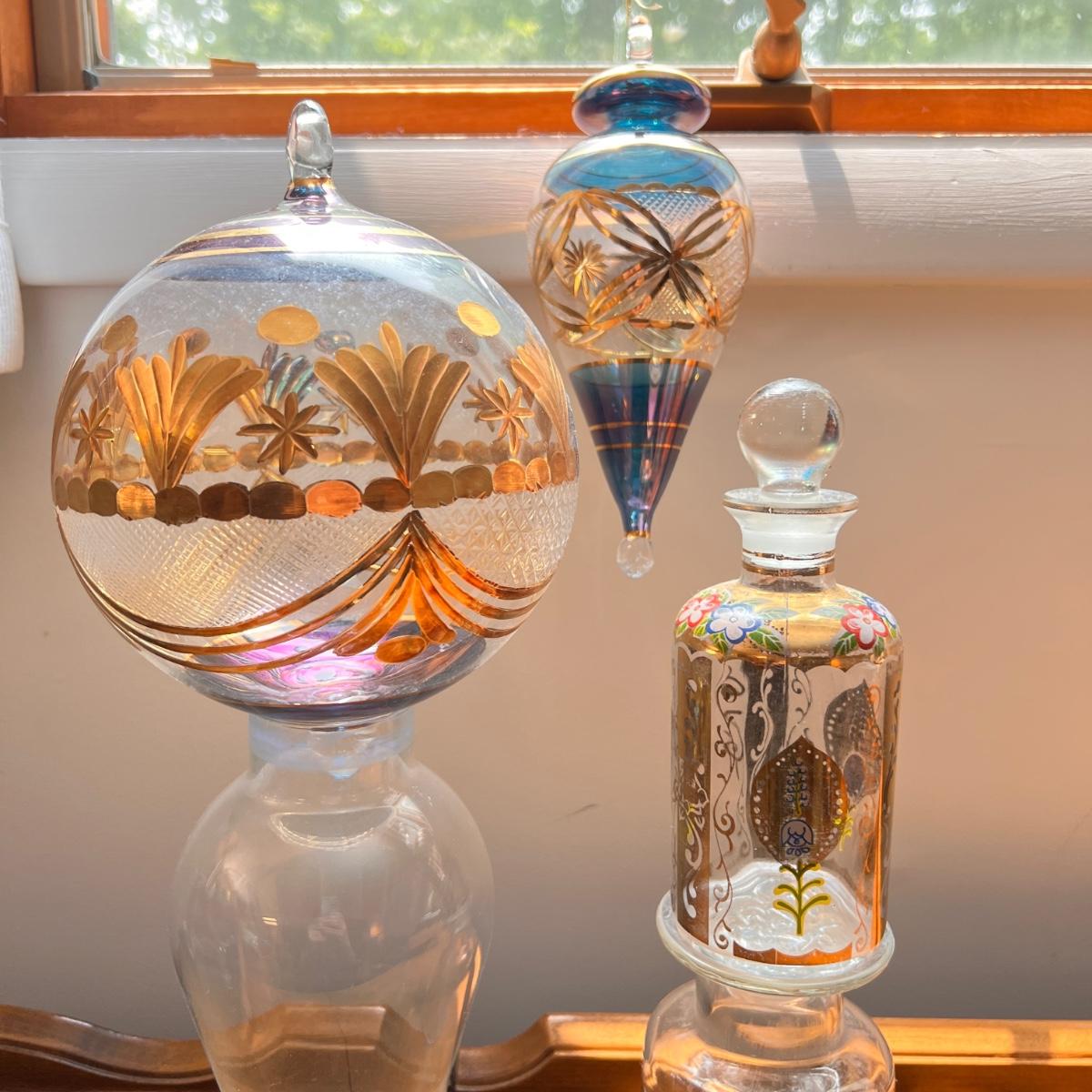 Lot 3 Large Egyptian Glass Ornaments Perfume Bottle