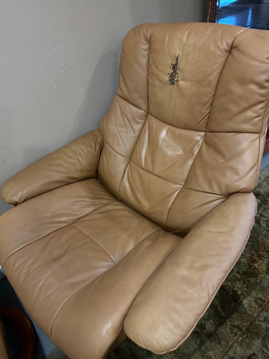 DAMAGE TO HEADREST AREA OF CHAIR SEE PICS