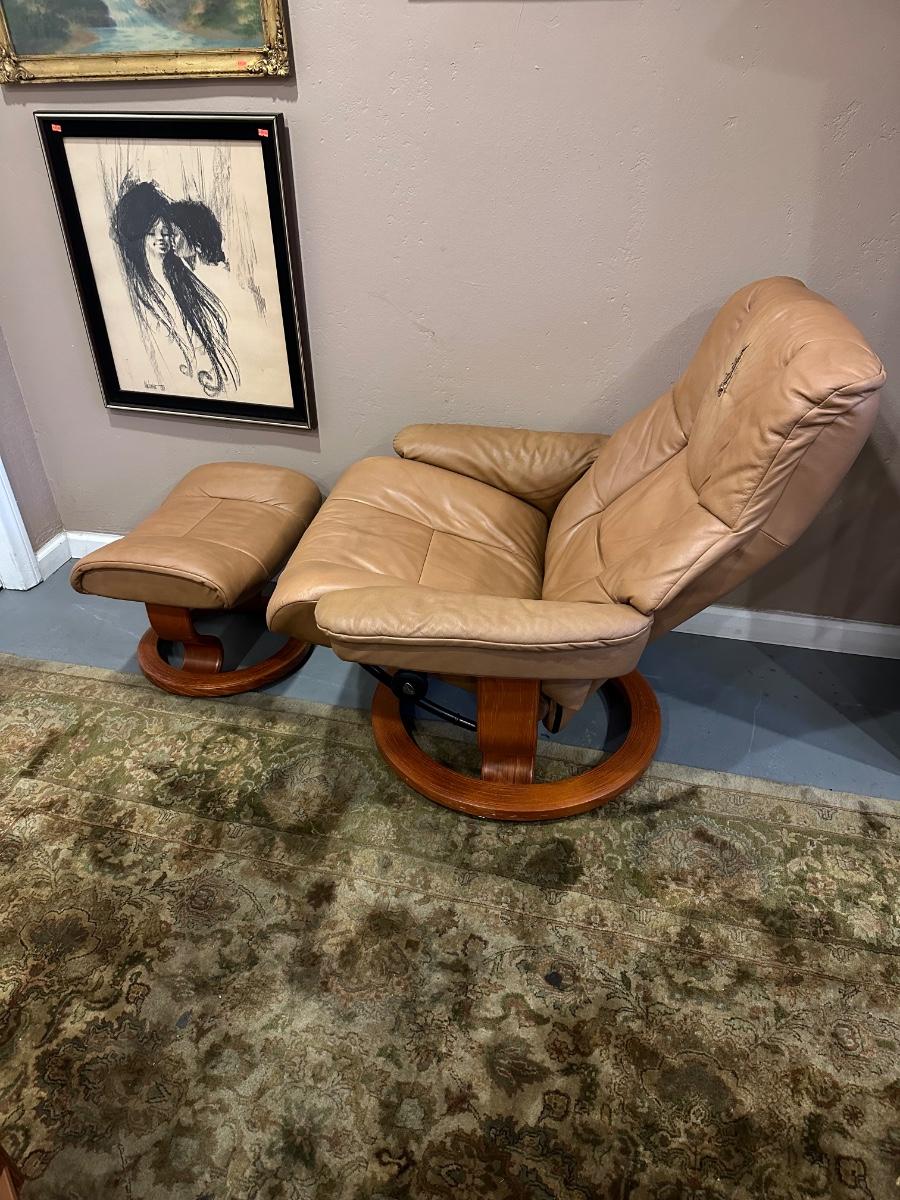 LOT 3:  EKORNES STRESSLESS RECLINER CHAIR WITH OTTOMAN