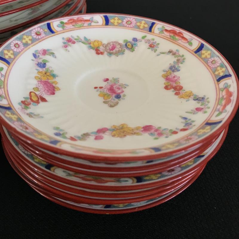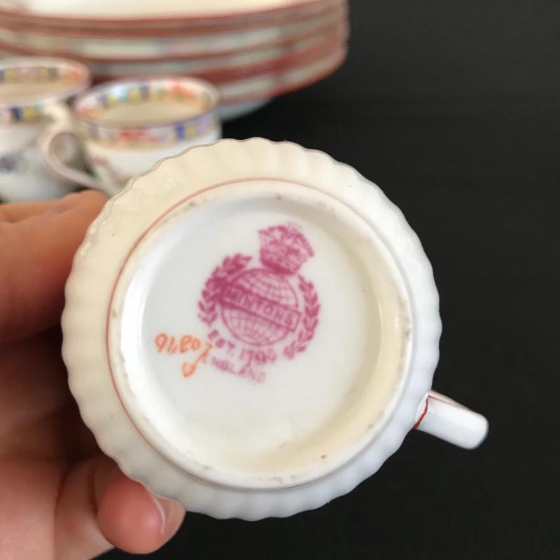 18-piece Mintons China set from England. Four tiny tea cups (approx. 2.5” tall), 8 small plates and 6 shallow bowls. Shipping available or local pickup in Asheville, NC.