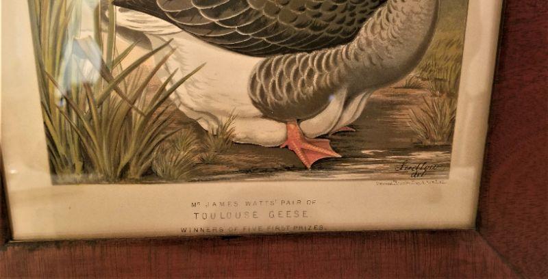 Lot #3 Fabulous Victorian Lithograph "Pair of Toulouse Geese" in period frame