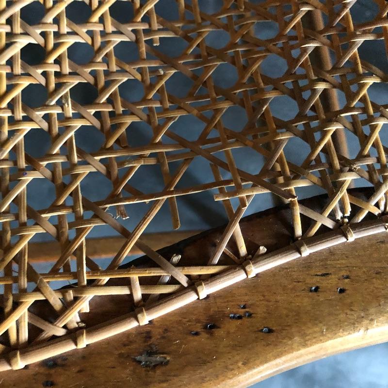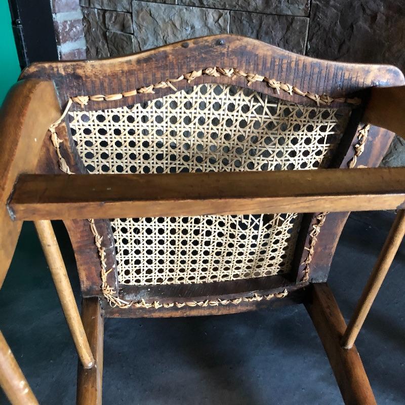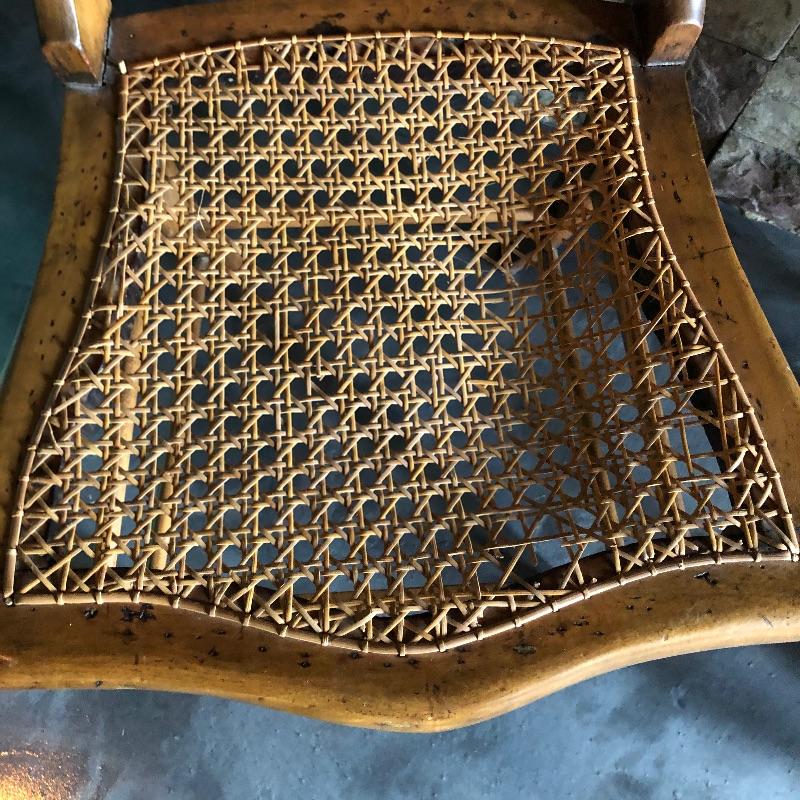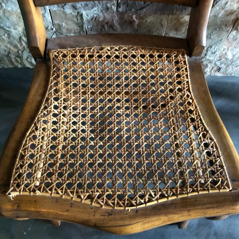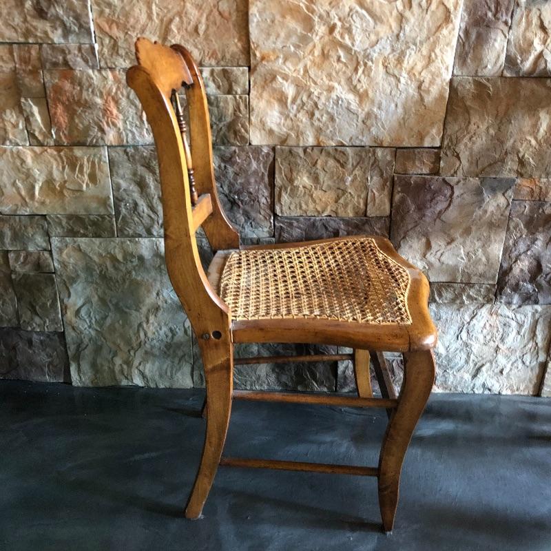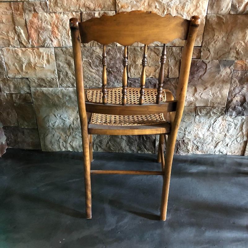 This lot includes four wooden chairs with cane bottoms. A great find for the woodworker to do some repairs and have four lovely chairs. Two chairs have cracks on seat and the other two the cane is breaking through, see pictures.