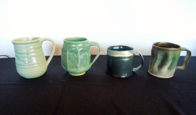 Lot 37: Four Stoneware Handmade Pottery Mugs