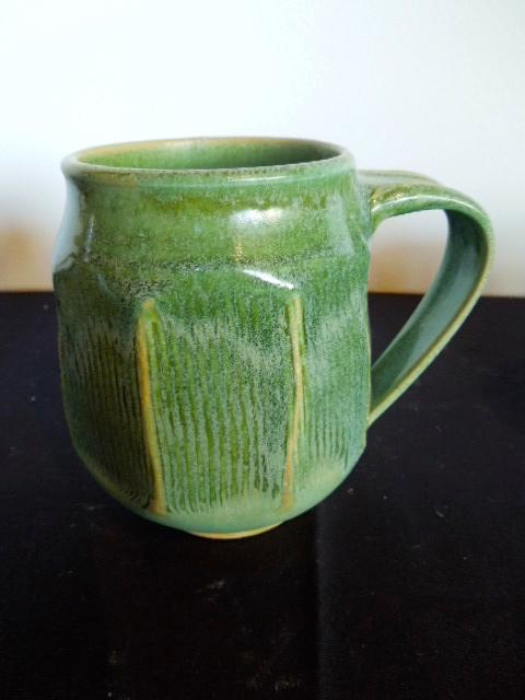 Nice group of natural colored stoneware signed mugs.One has small chip.