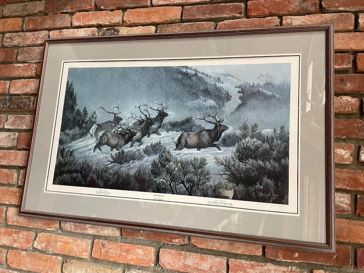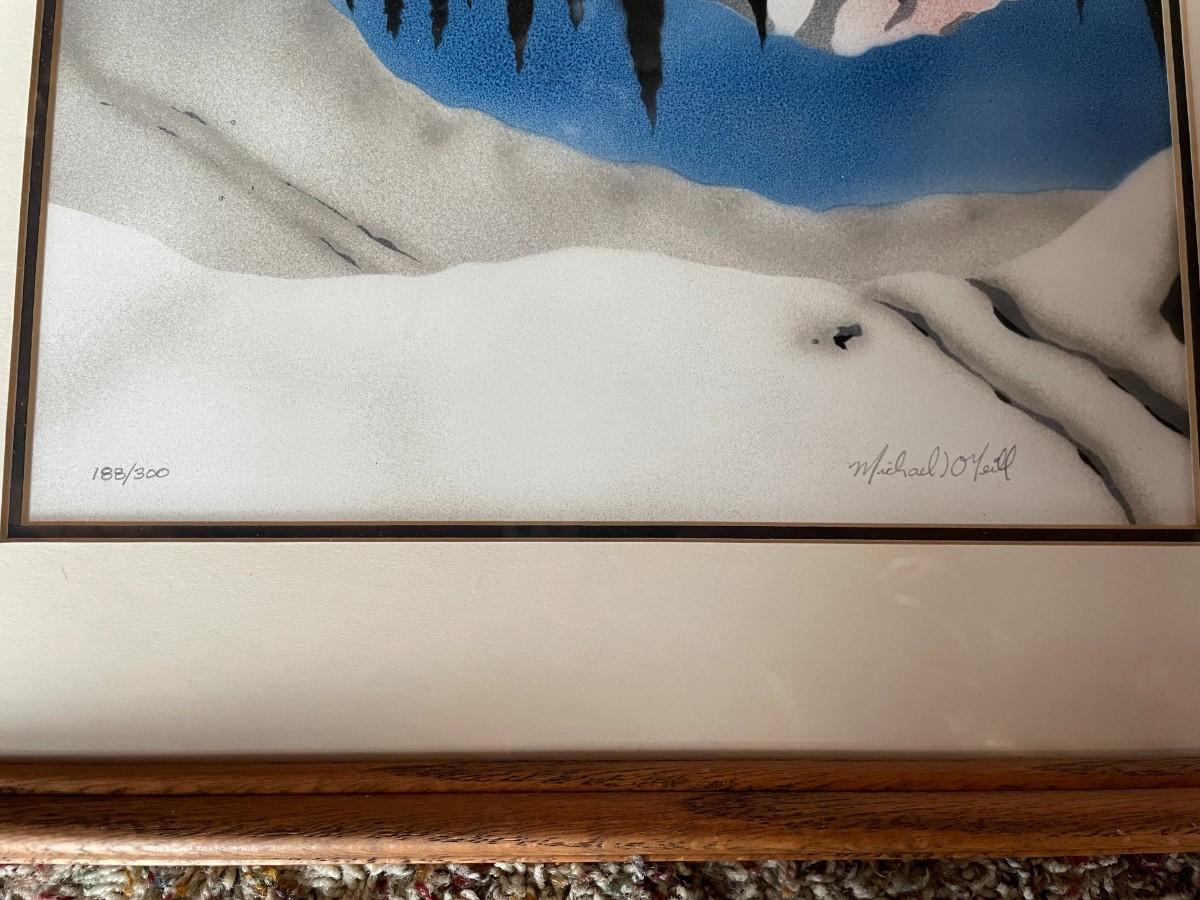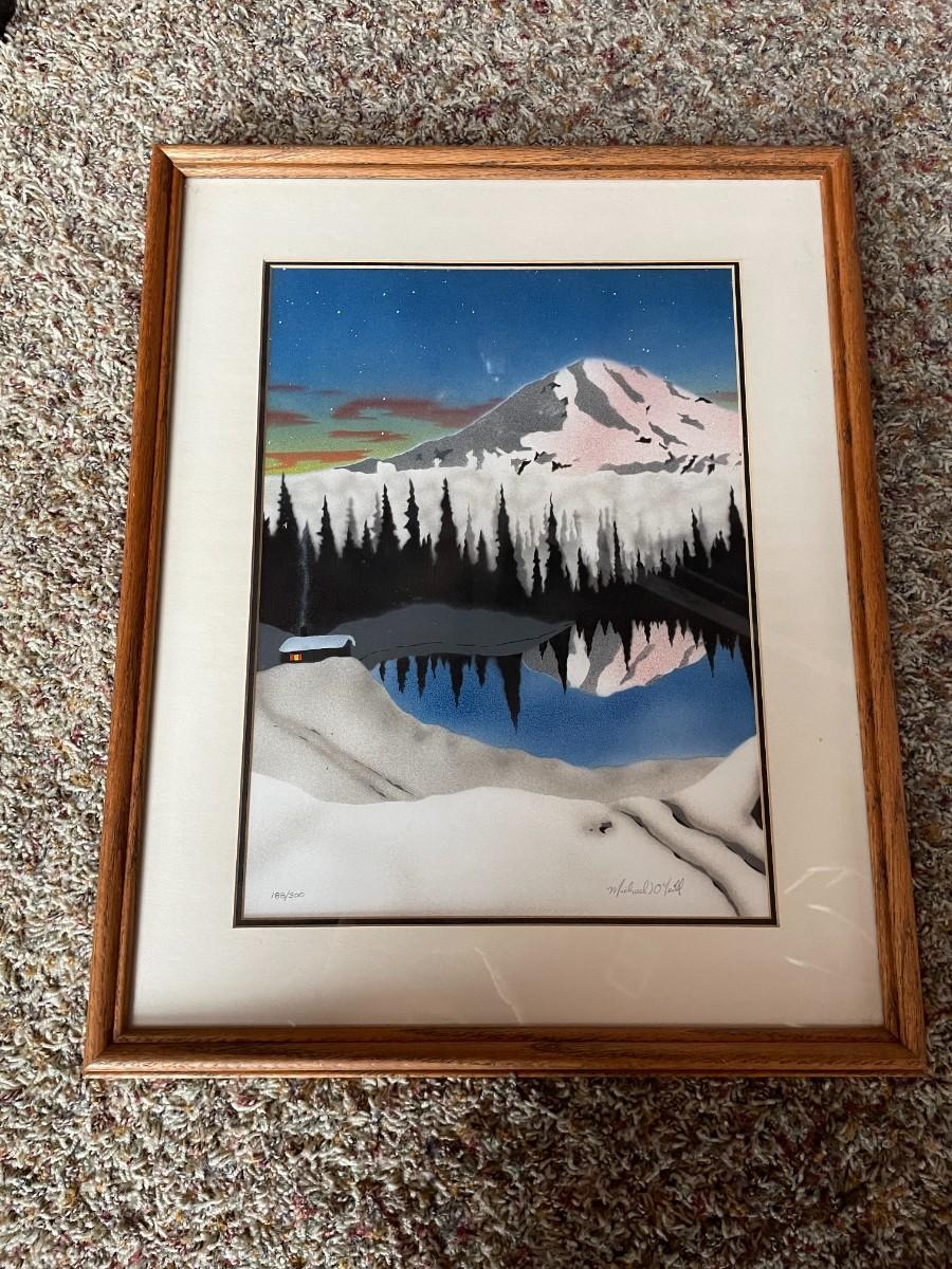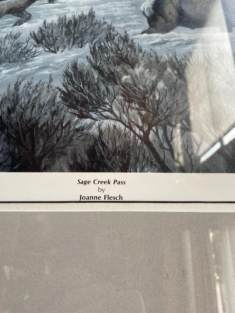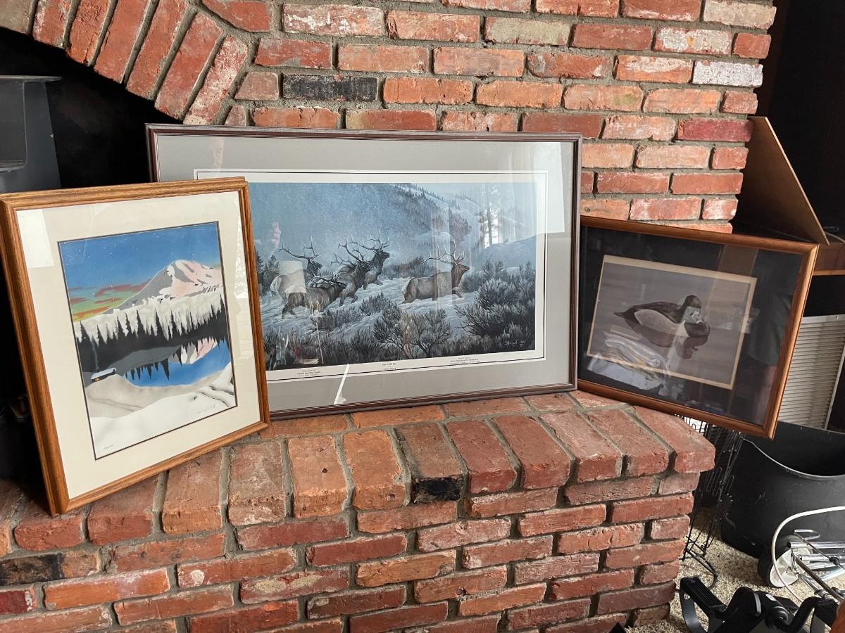 “Strolling Loon by Louis Frisino , Snow Mountain View by Michael O’Neill, “Sage Creek Pass” by Joanne Flesch Largest one: 39w x 26h